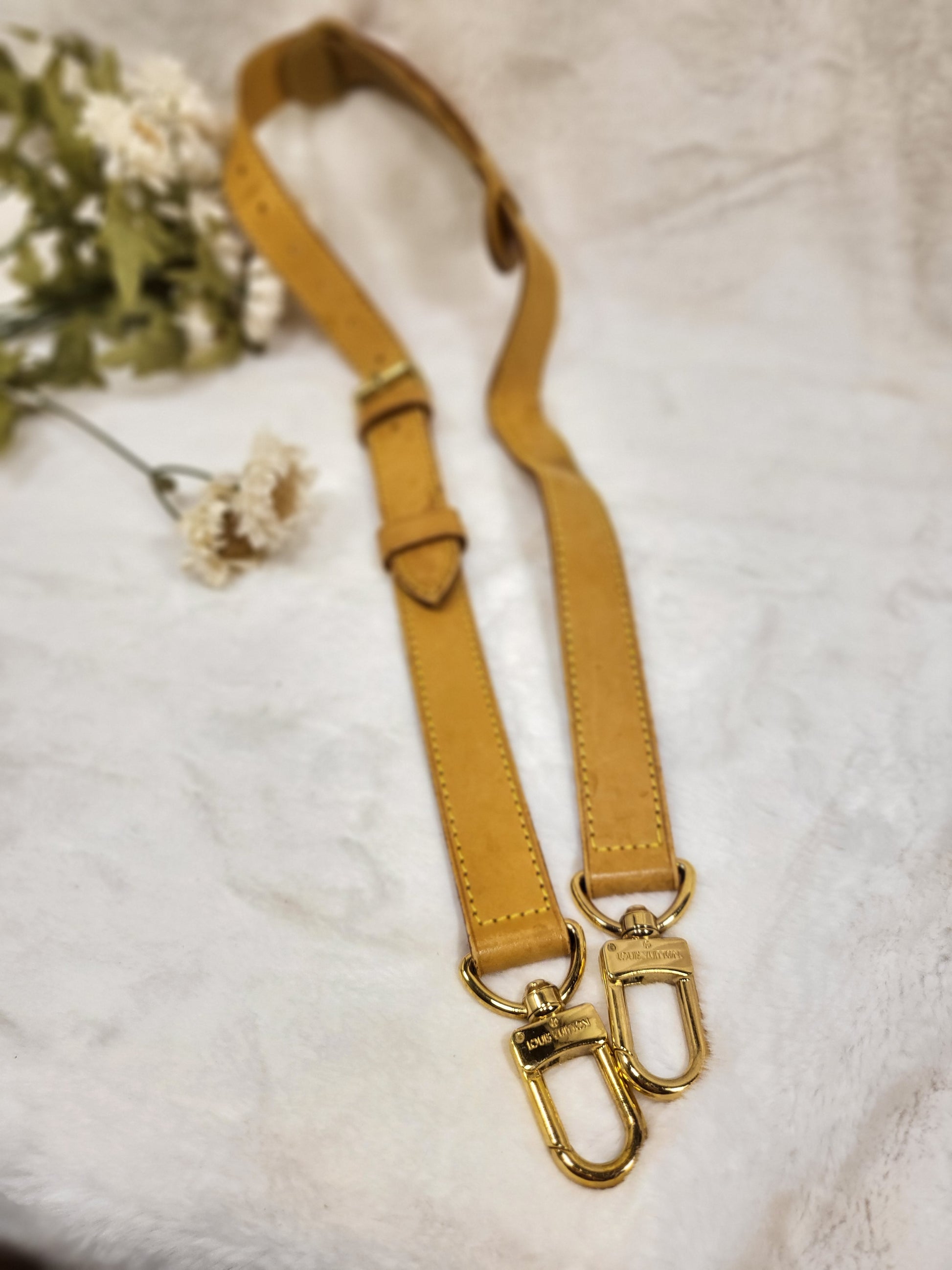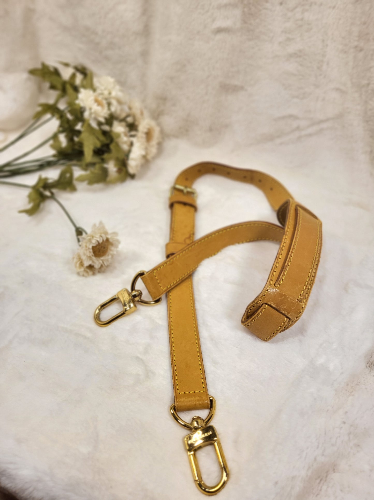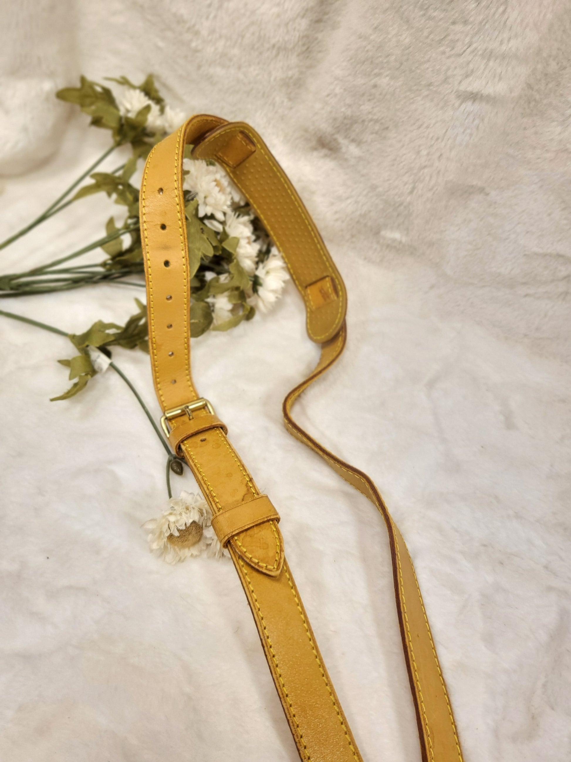 Vachetta leather shows a lighter even color, signs of vintage, leather has minor marks, surface cracks and dryness.