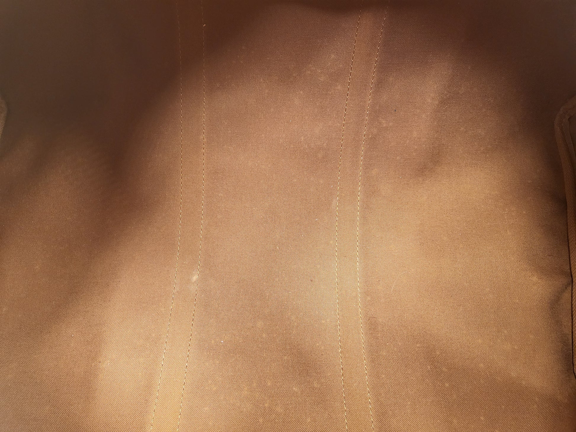 Vachetta leather shows signs of uses, leather has minor marks, stains