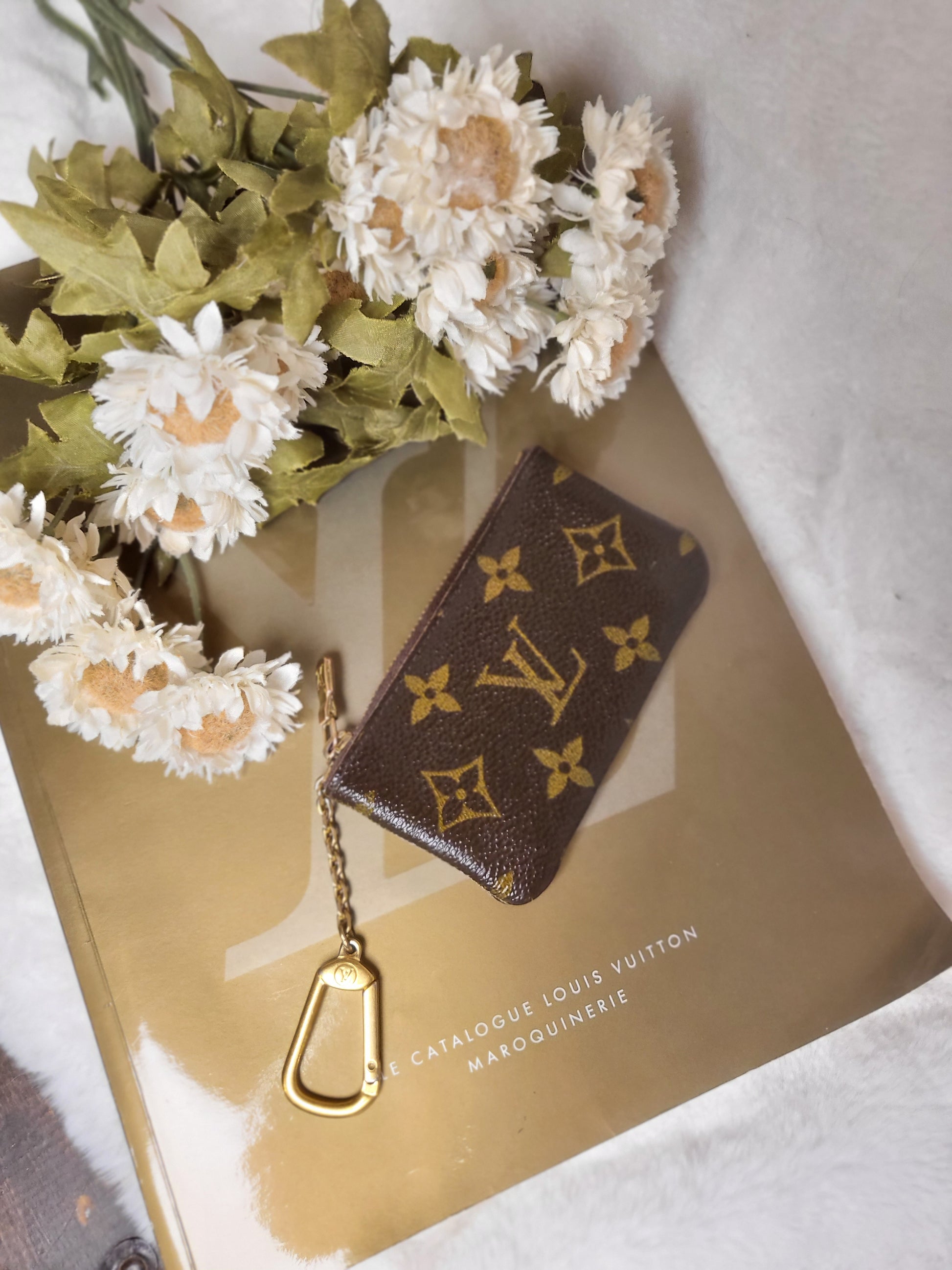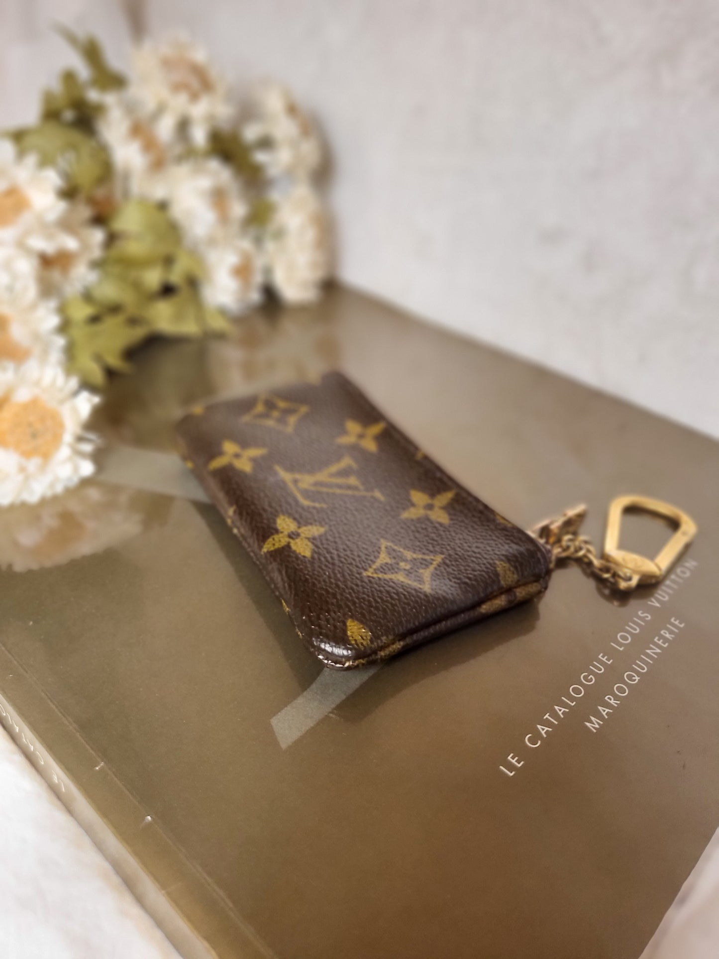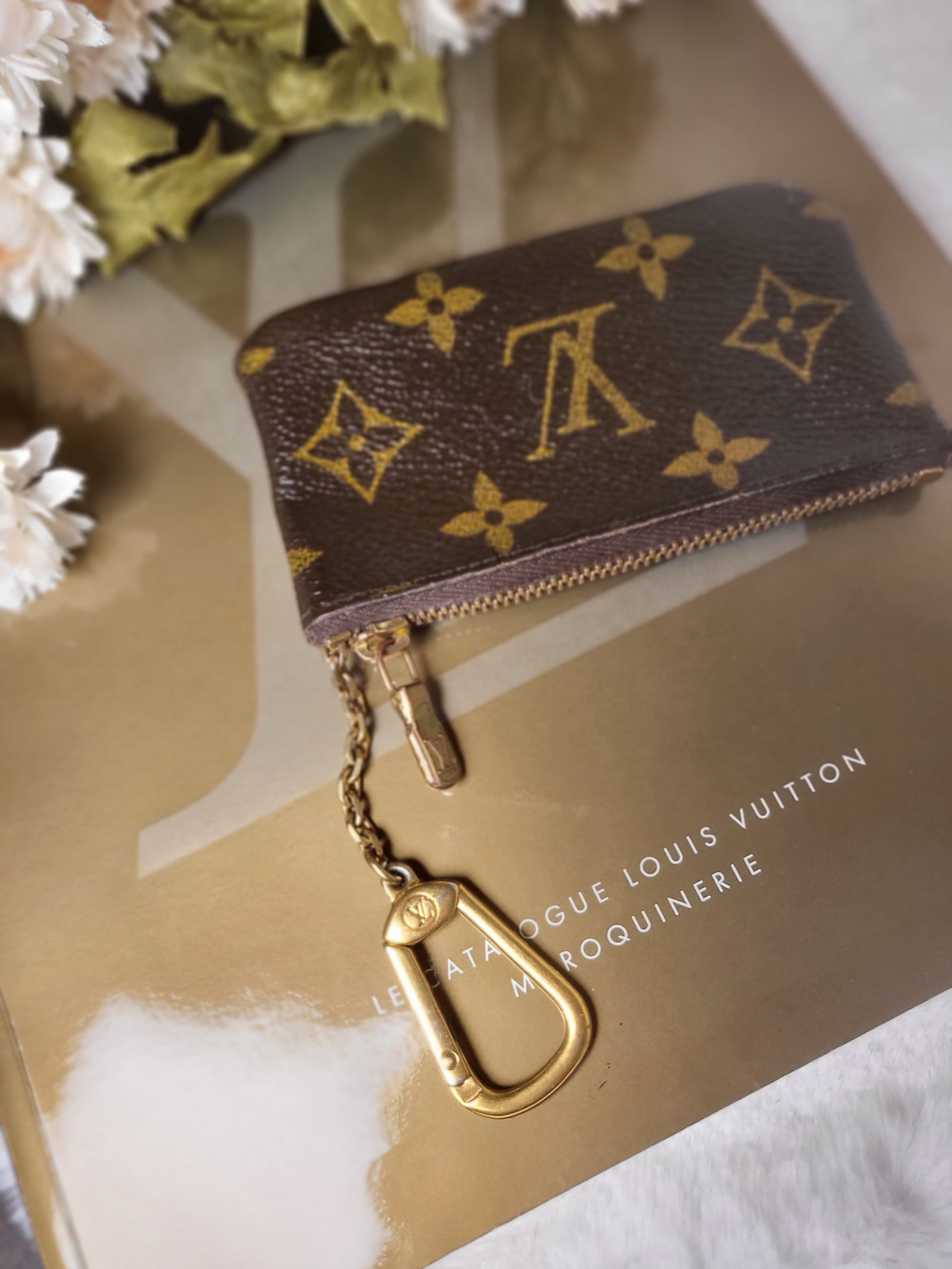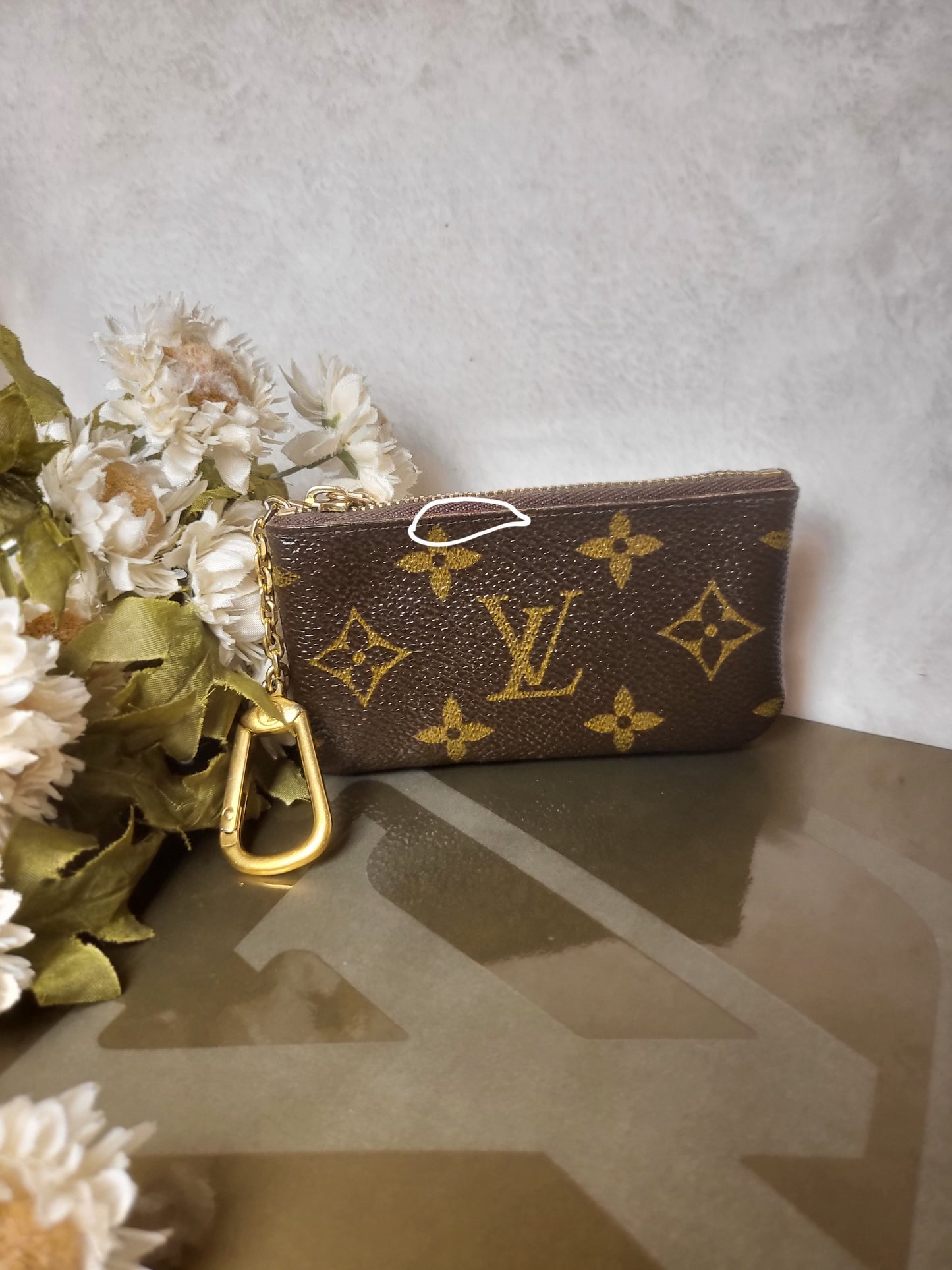 no rubs or cracks around corners, hardware shows signs of wear but is shiny and golden