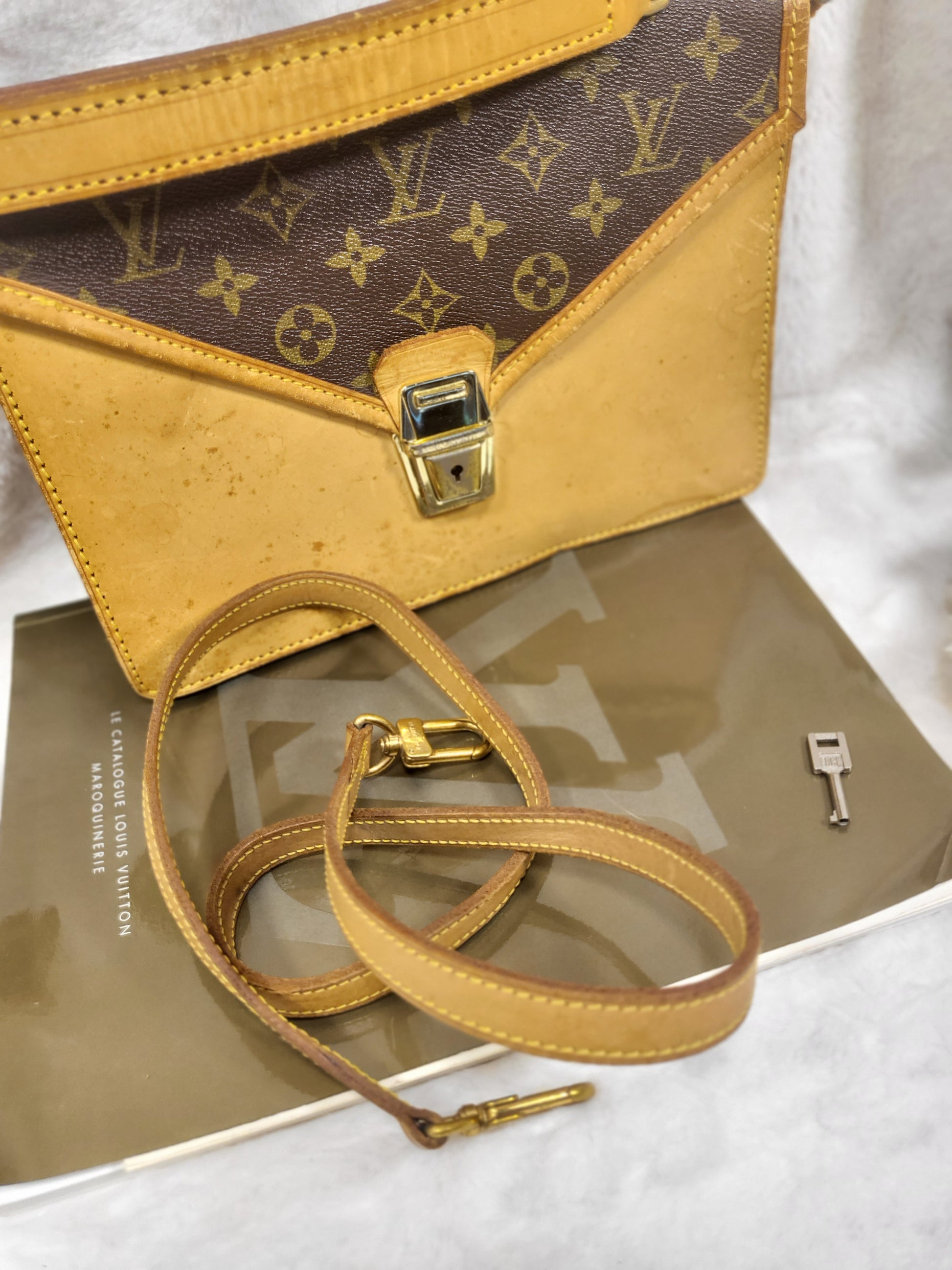 Please note that this bag is a pre-loved vintage, there’s noticeable signs of wear and stains on leather part, monogram canvas is still in very beautiful condition, canvas is vibrant and sturdy.