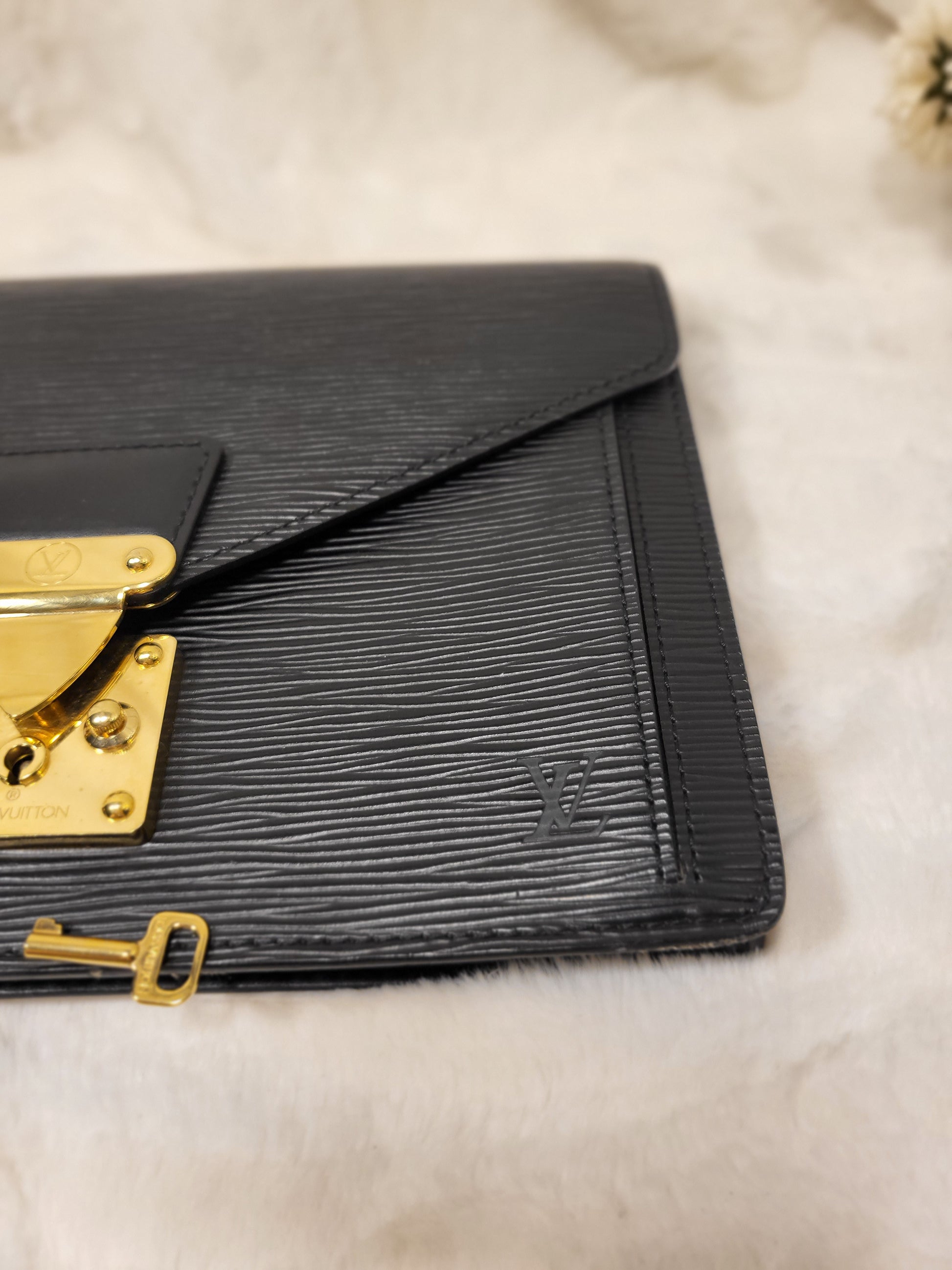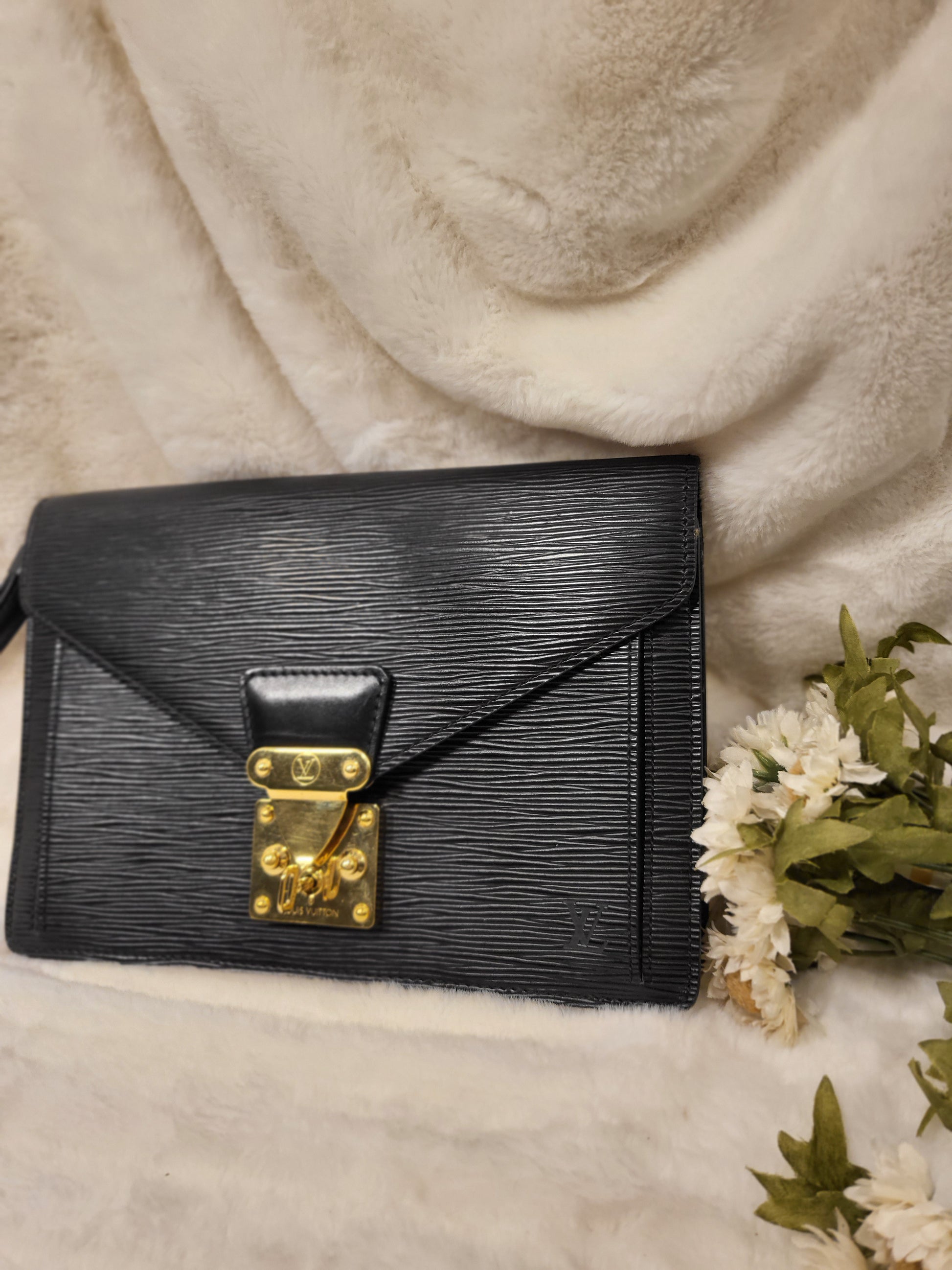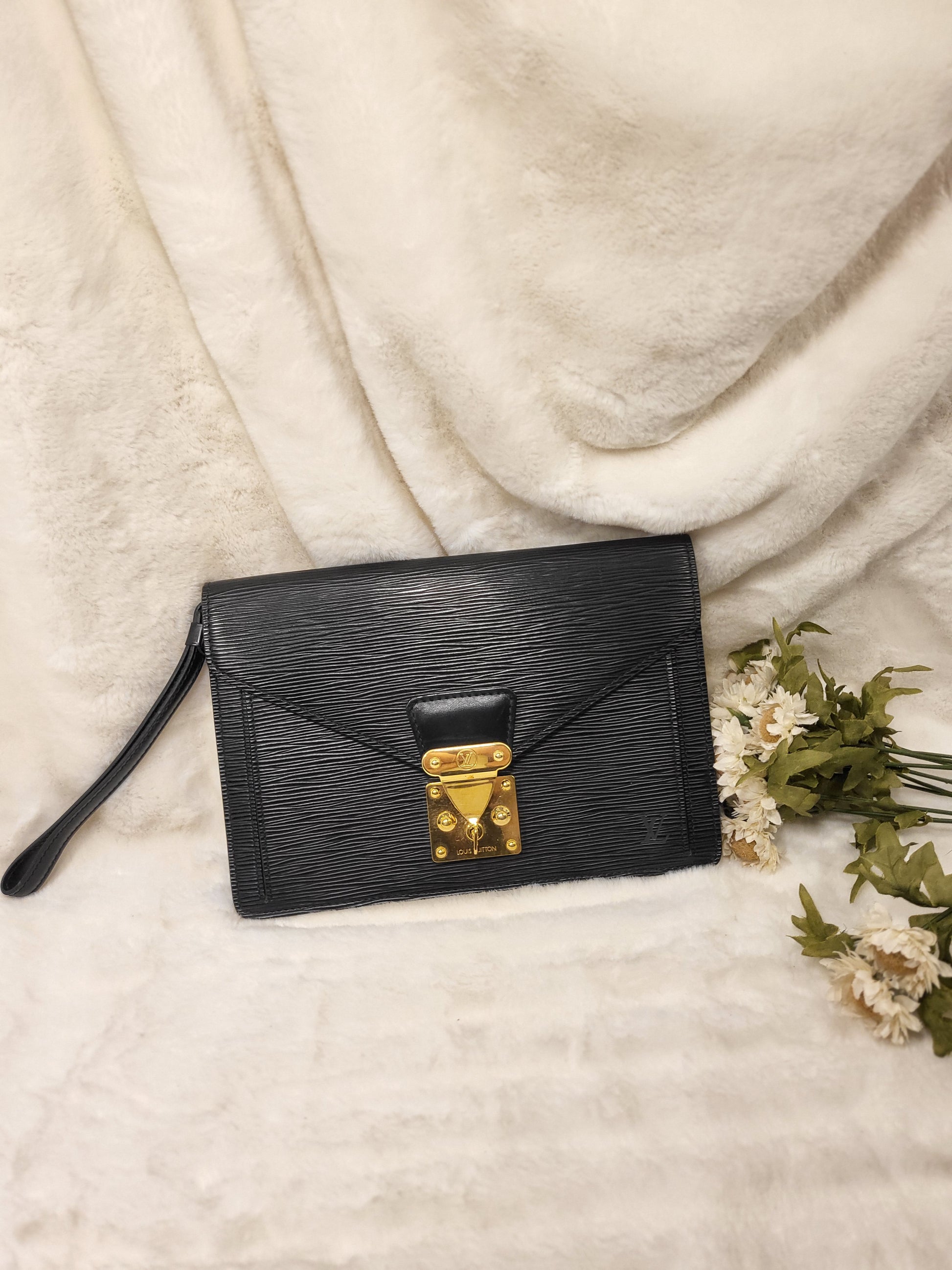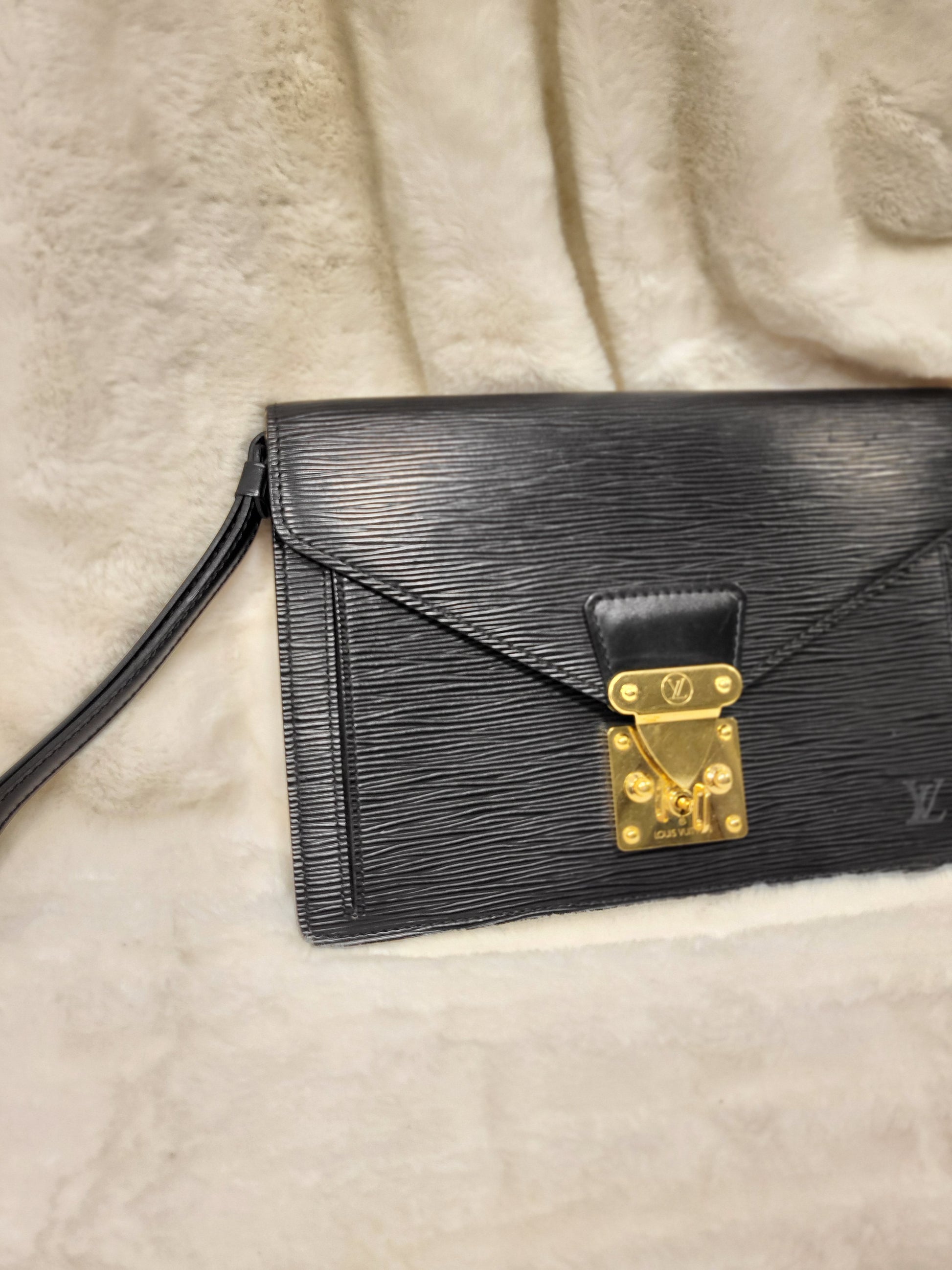 Authentic pre-owned Louis Vuitton serie Dragonne clutch black epi