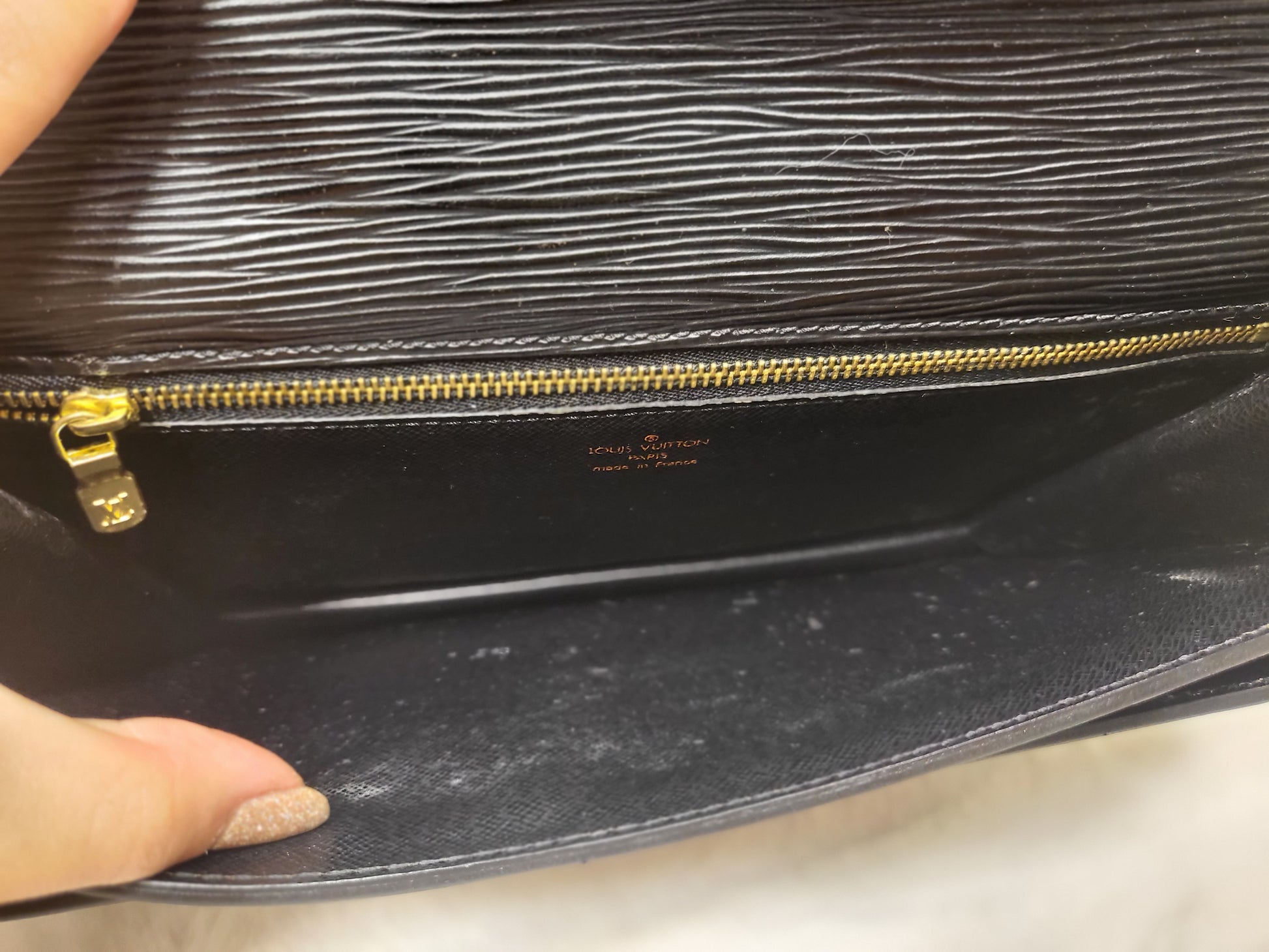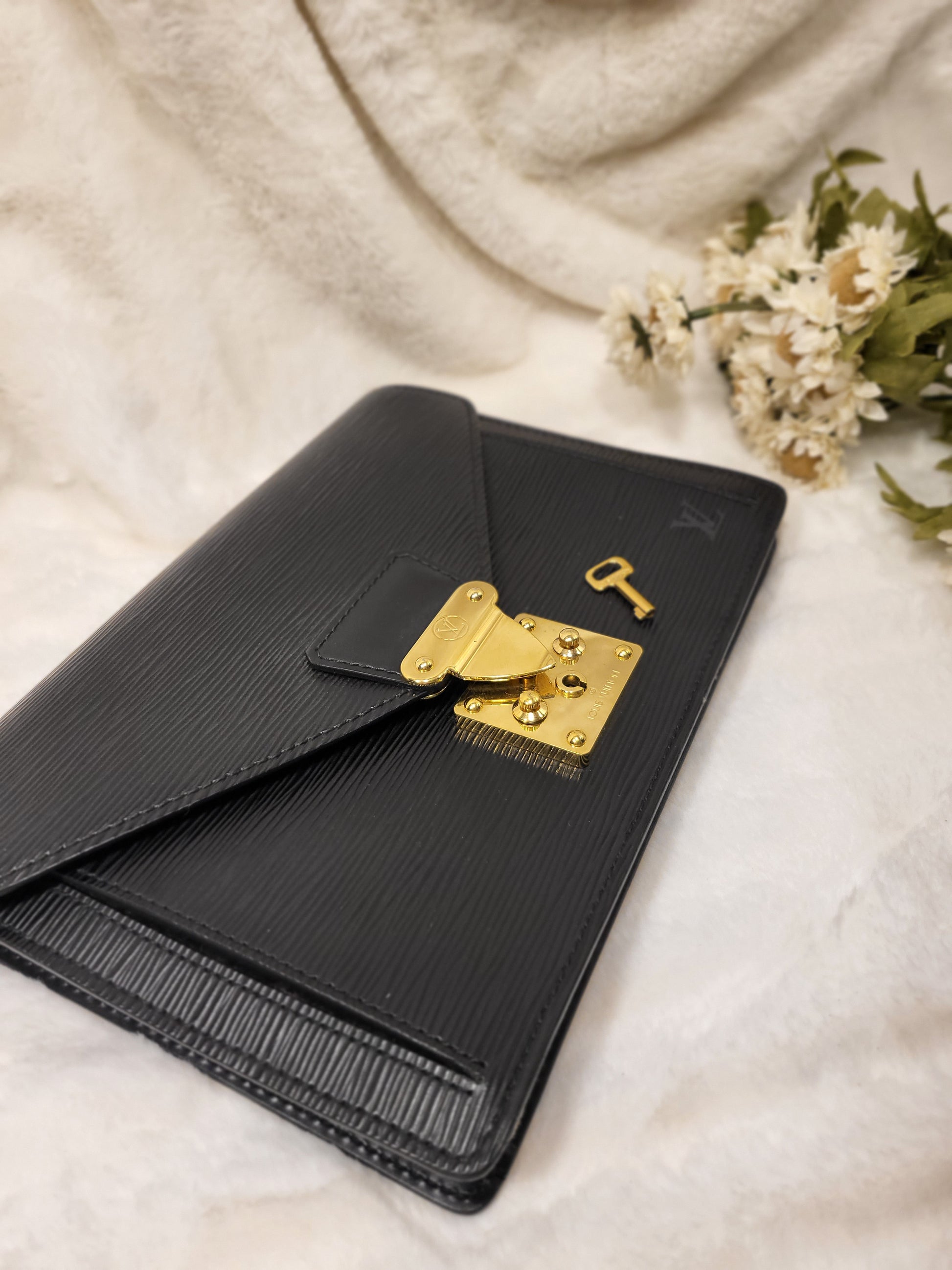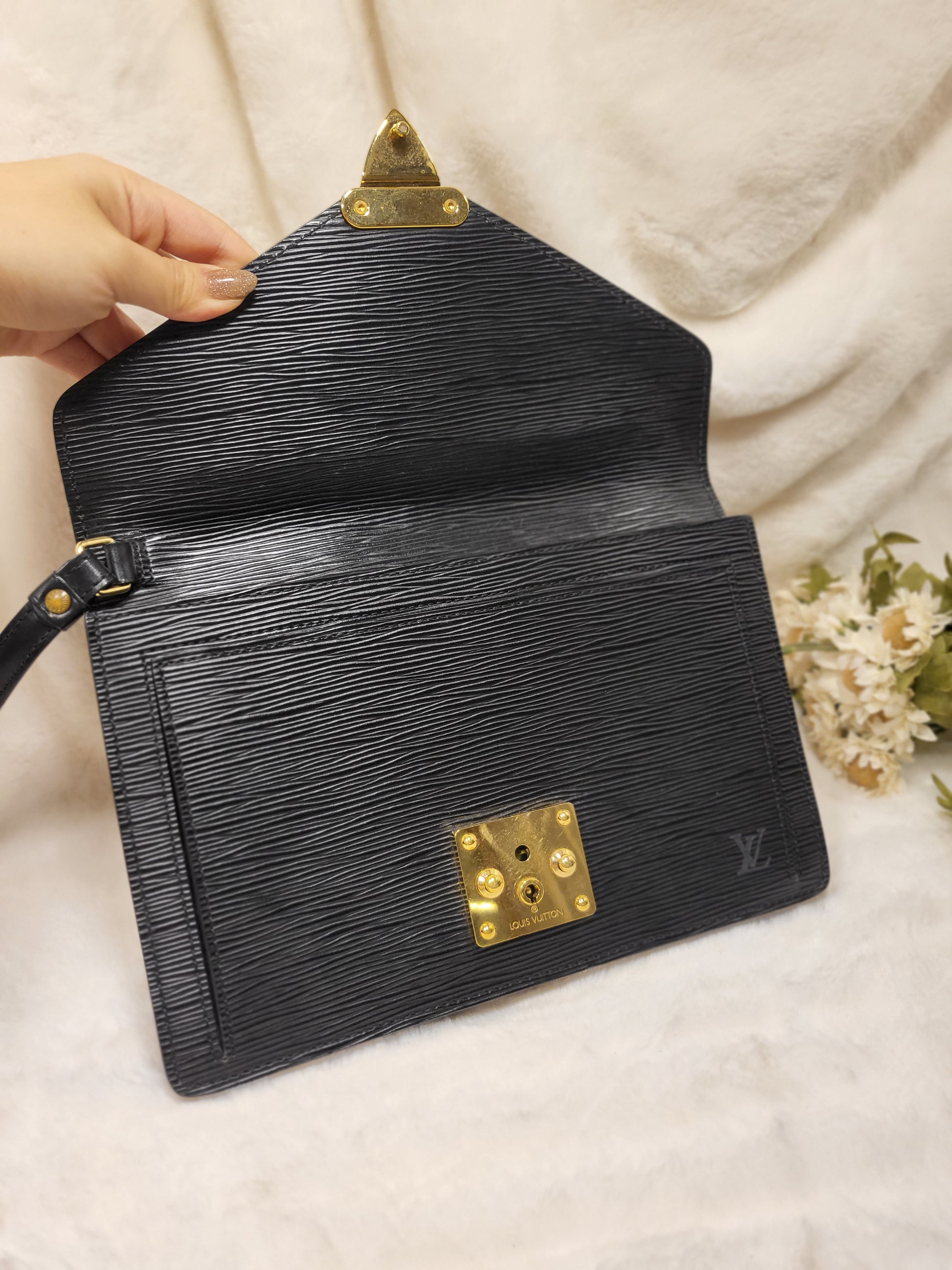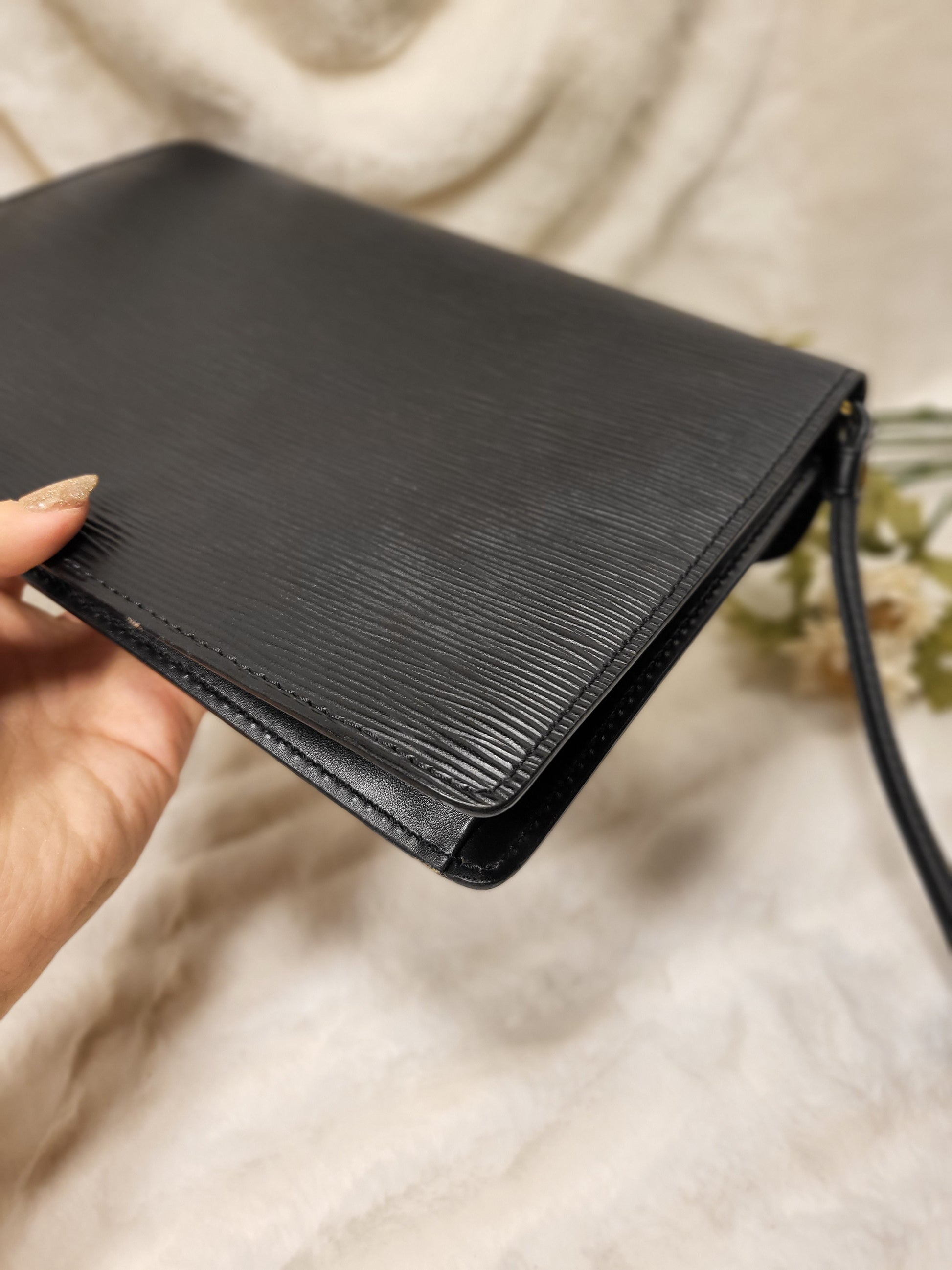 Authentic pre-owned Louis Vuitton serie Dragonne clutch black epi