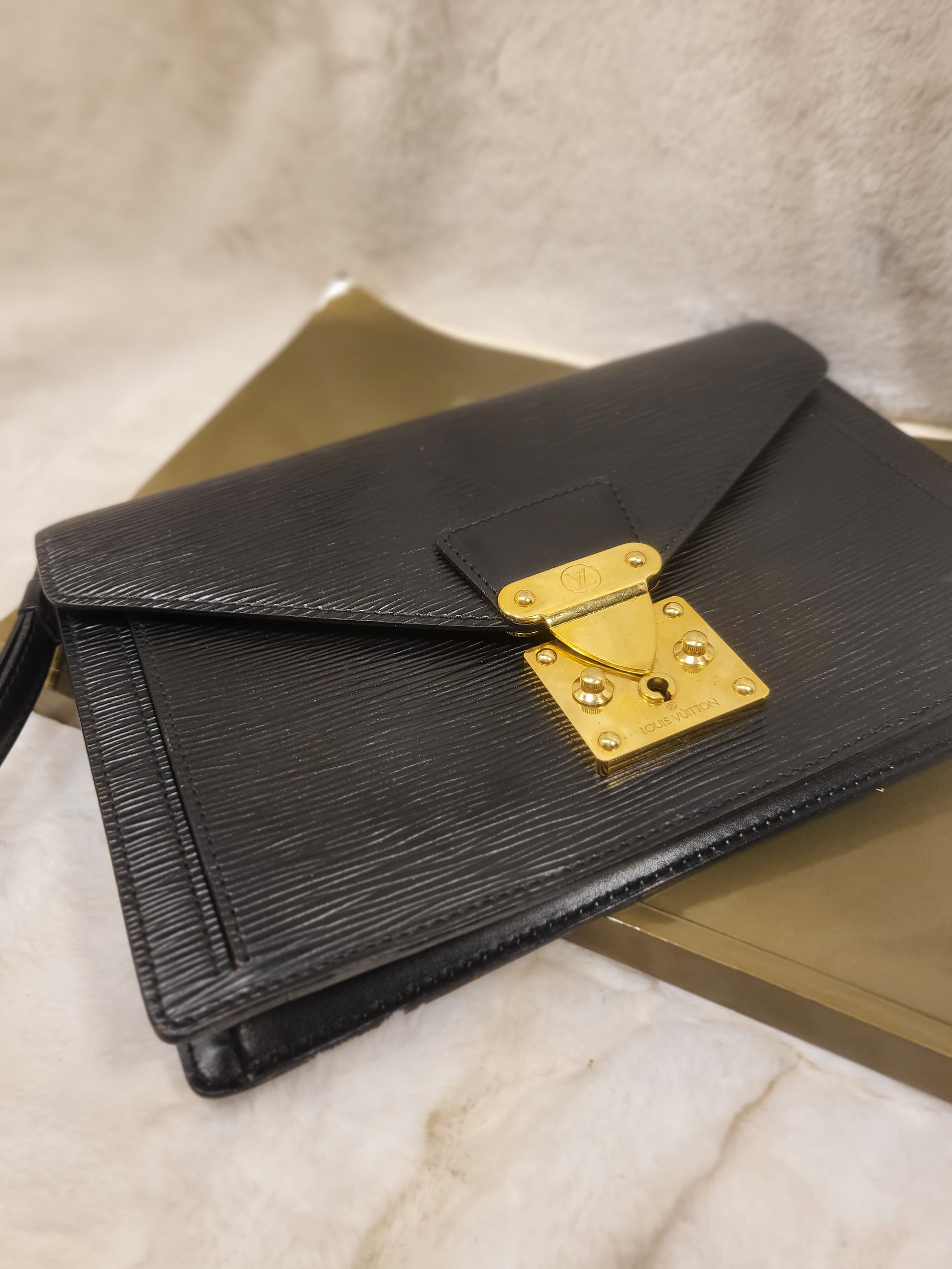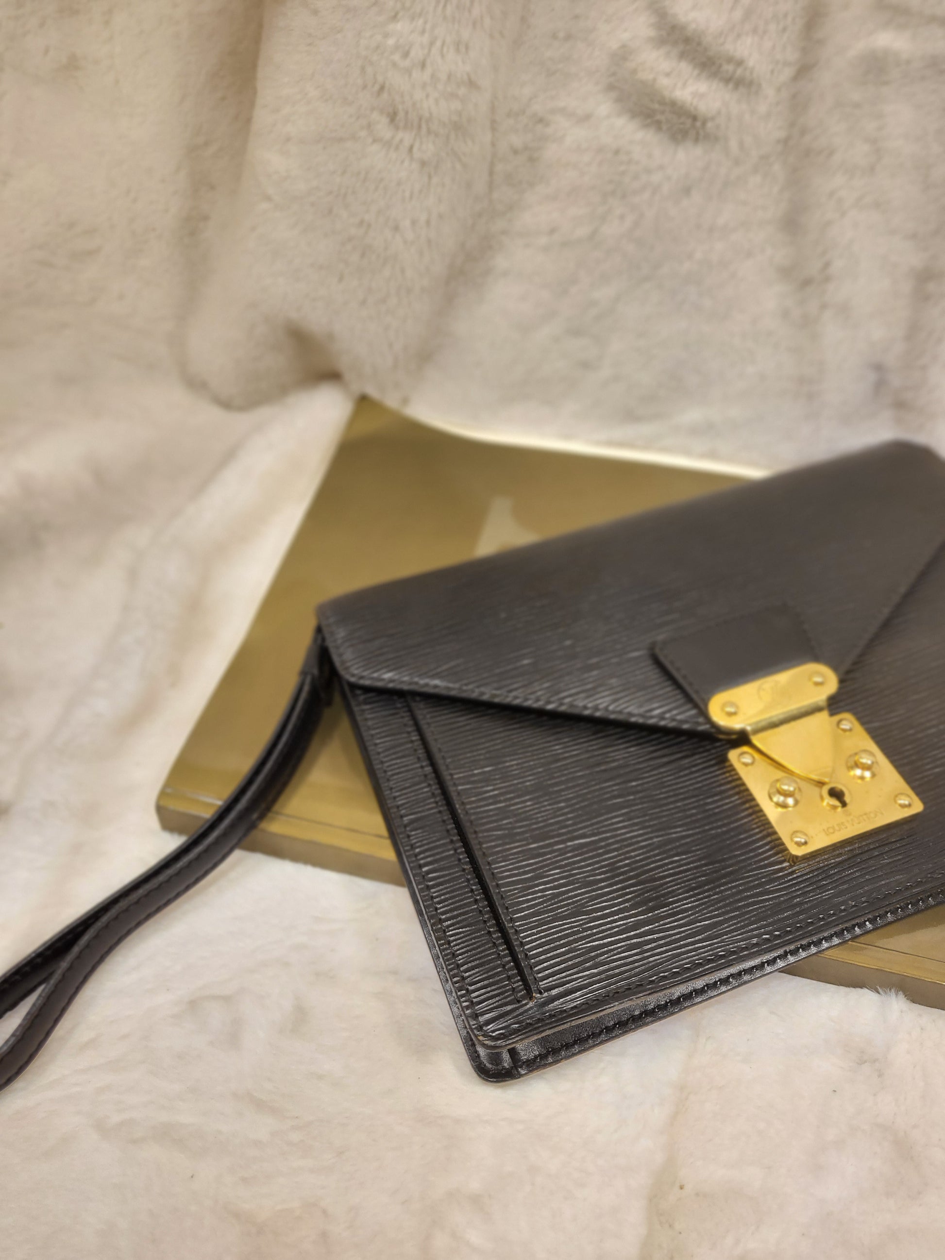 Authentic pre-owned Louis Vuitton Serie Dragonne epi black noir clutch