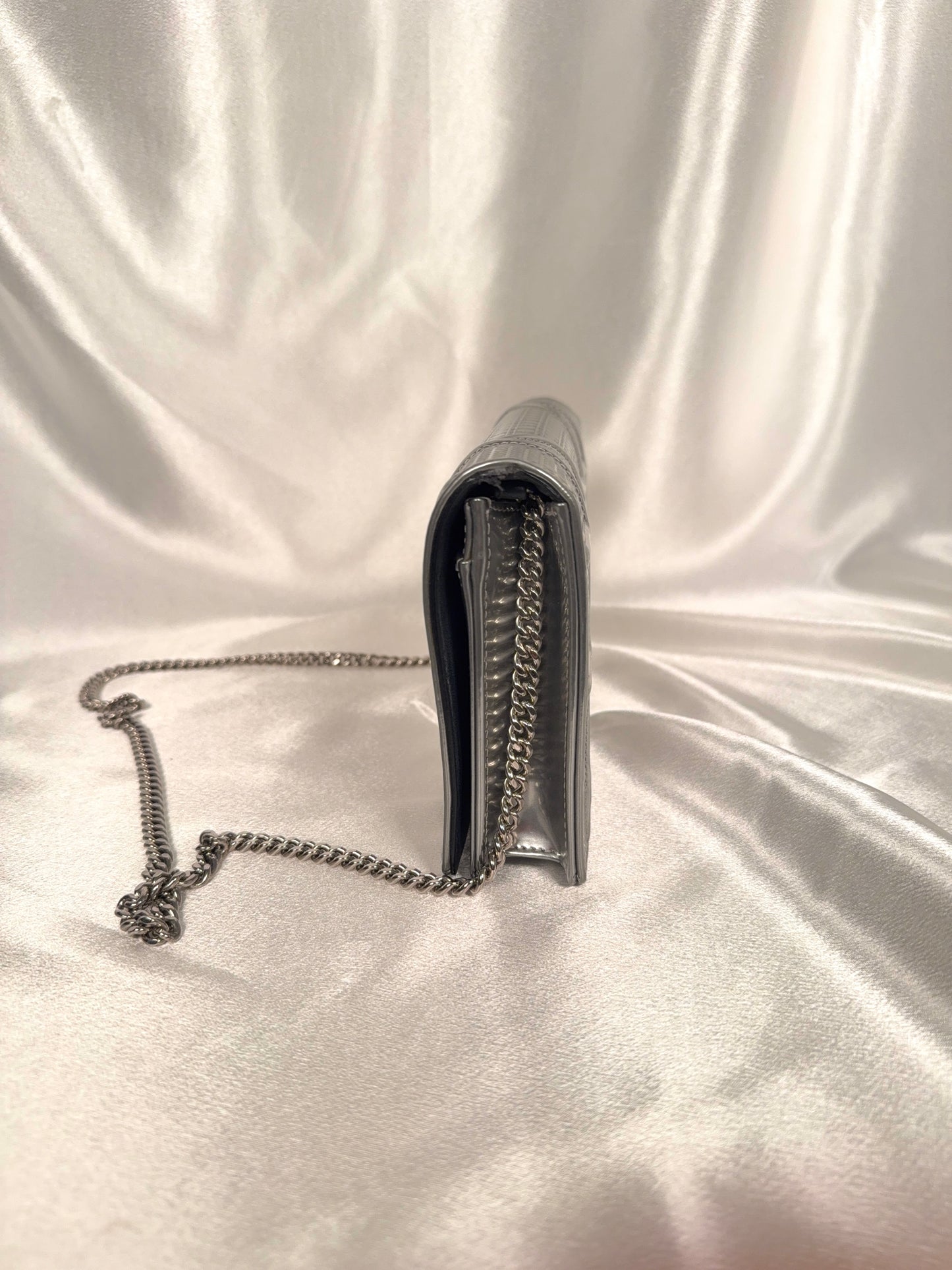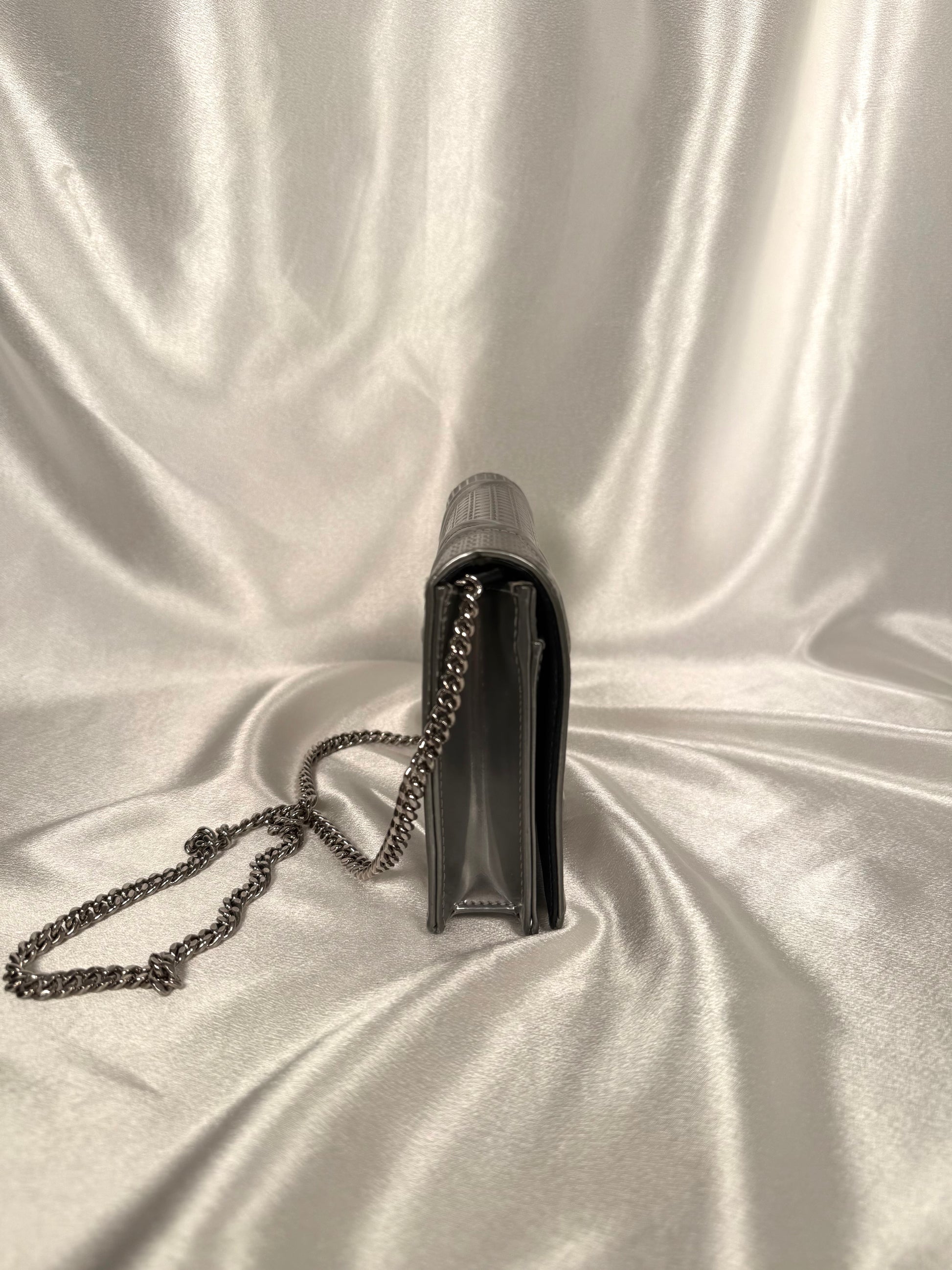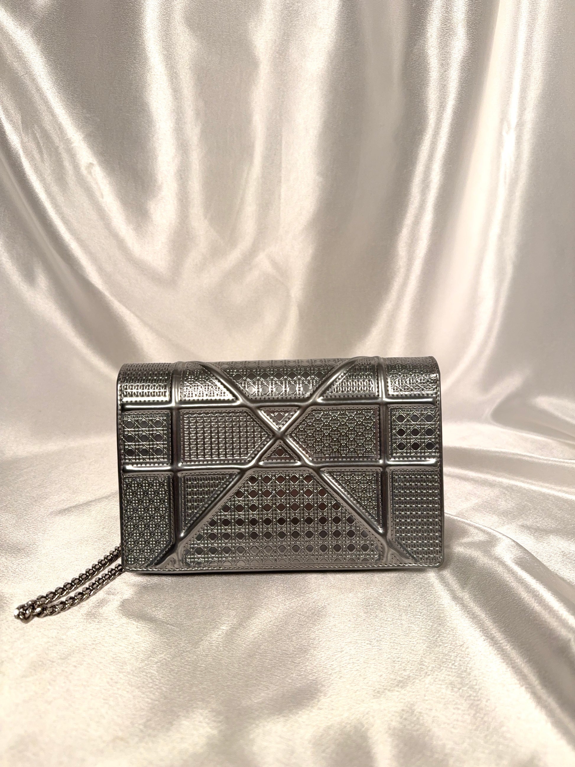 Add a touch of modern edge to your collection with this stunning Dior Diorama Wallet on Chain in metallic calfskin. Featuring Dior’s signature geometric cannage pattern, this piece blends architectural elegance with timeless luxury.