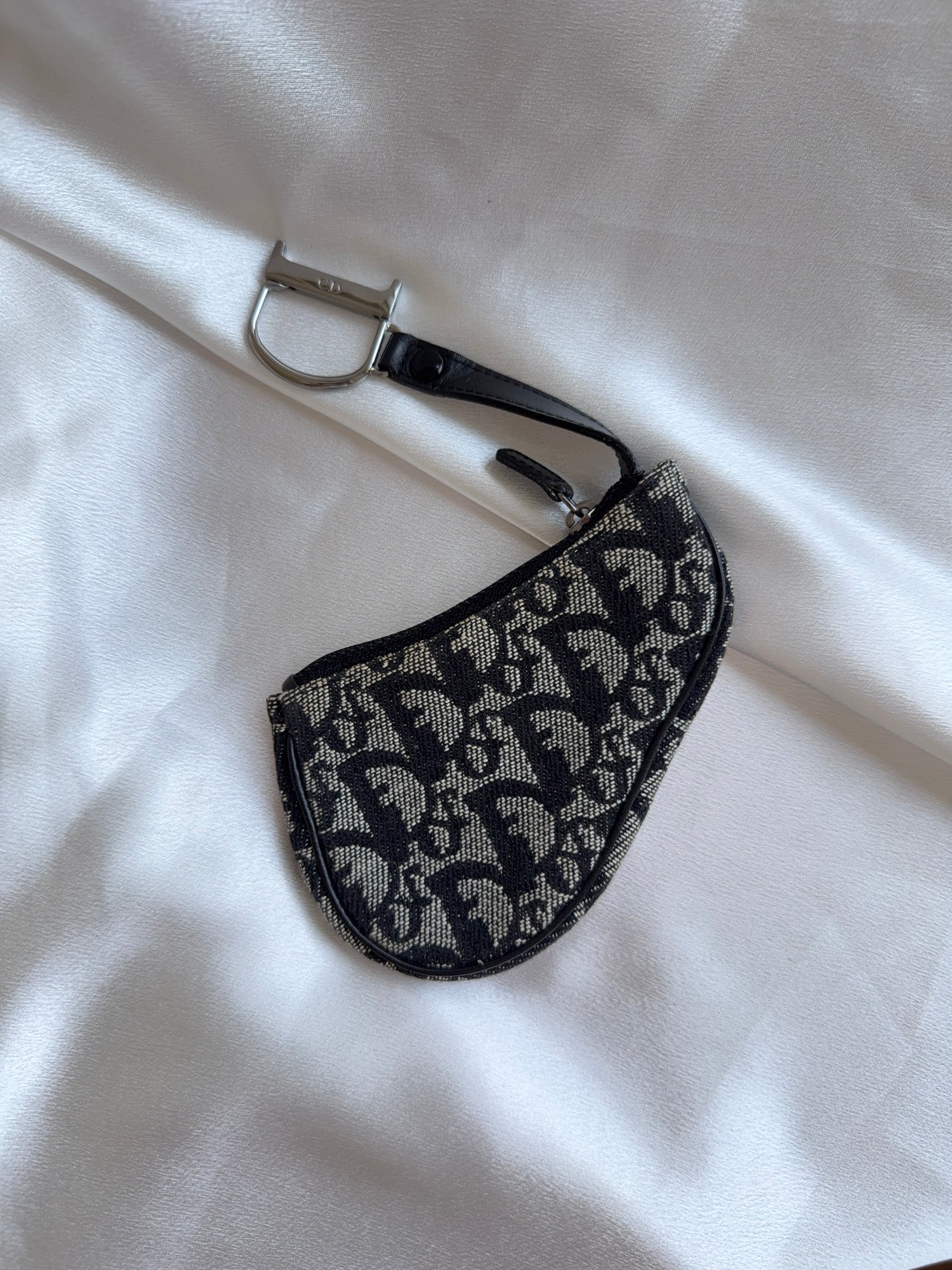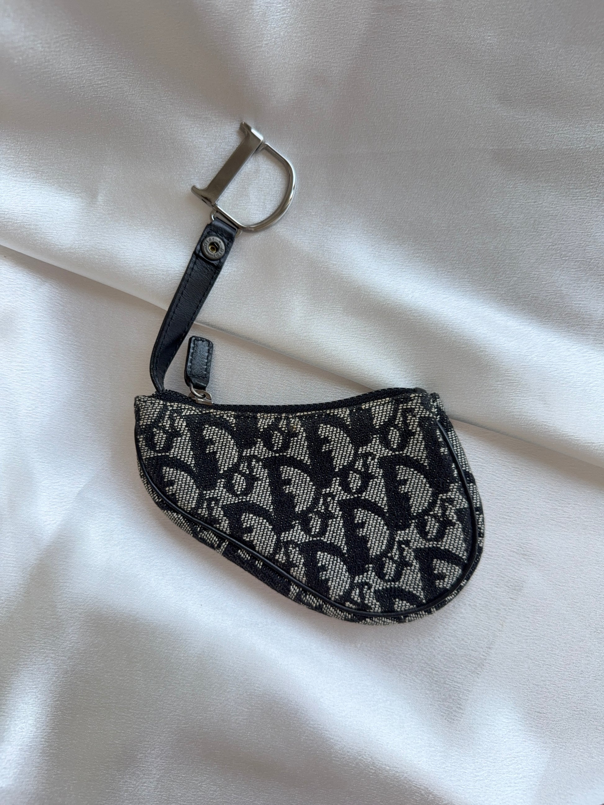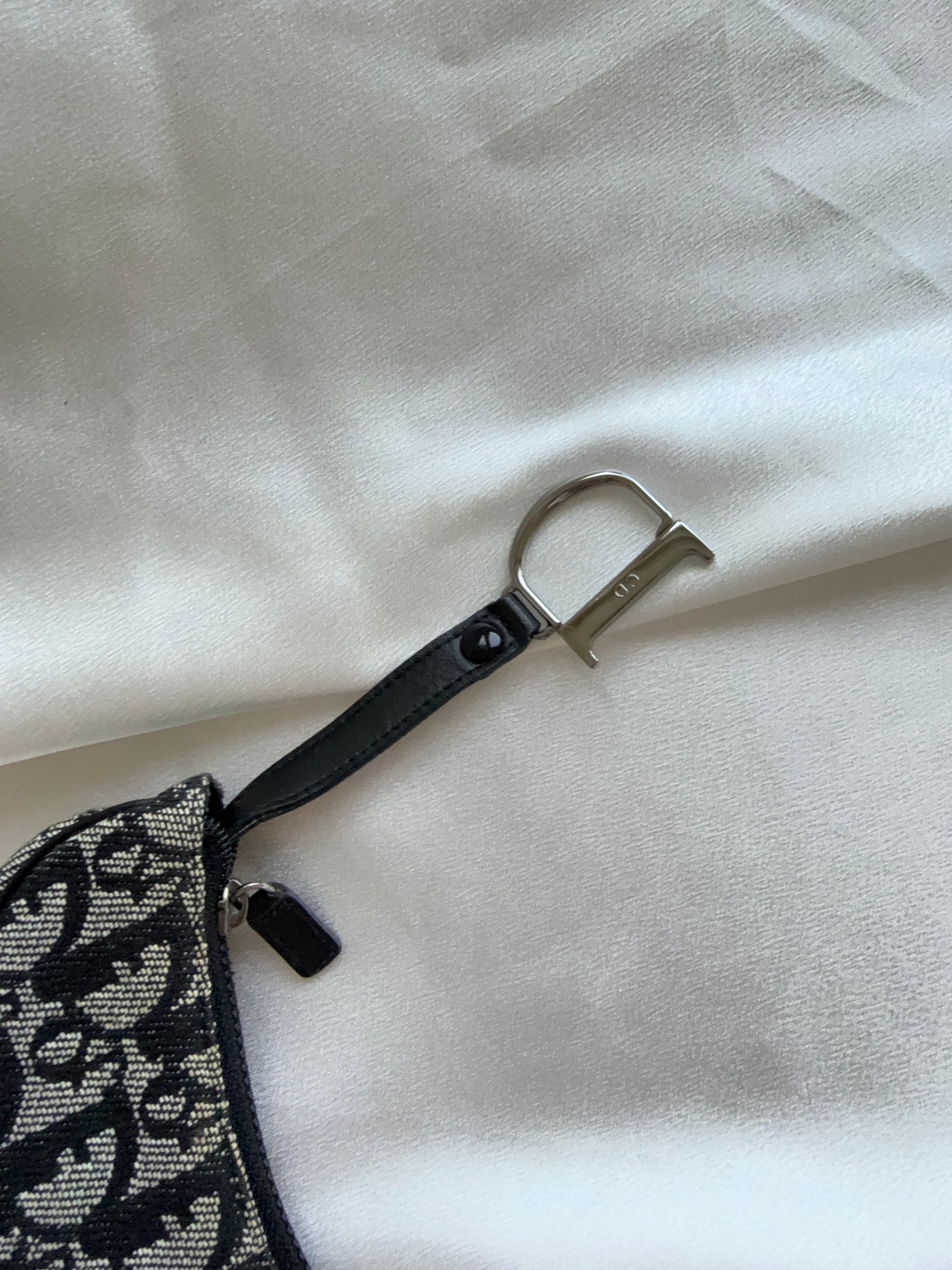 This rare Dior Saddle Oblique Trotter pouch is the perfect miniature accessory. Featuring the iconic Dior Oblique canvas with a silver-tone “D” charm strap, it can be used as a bag charm, key pouch, or for carrying small essentials.
