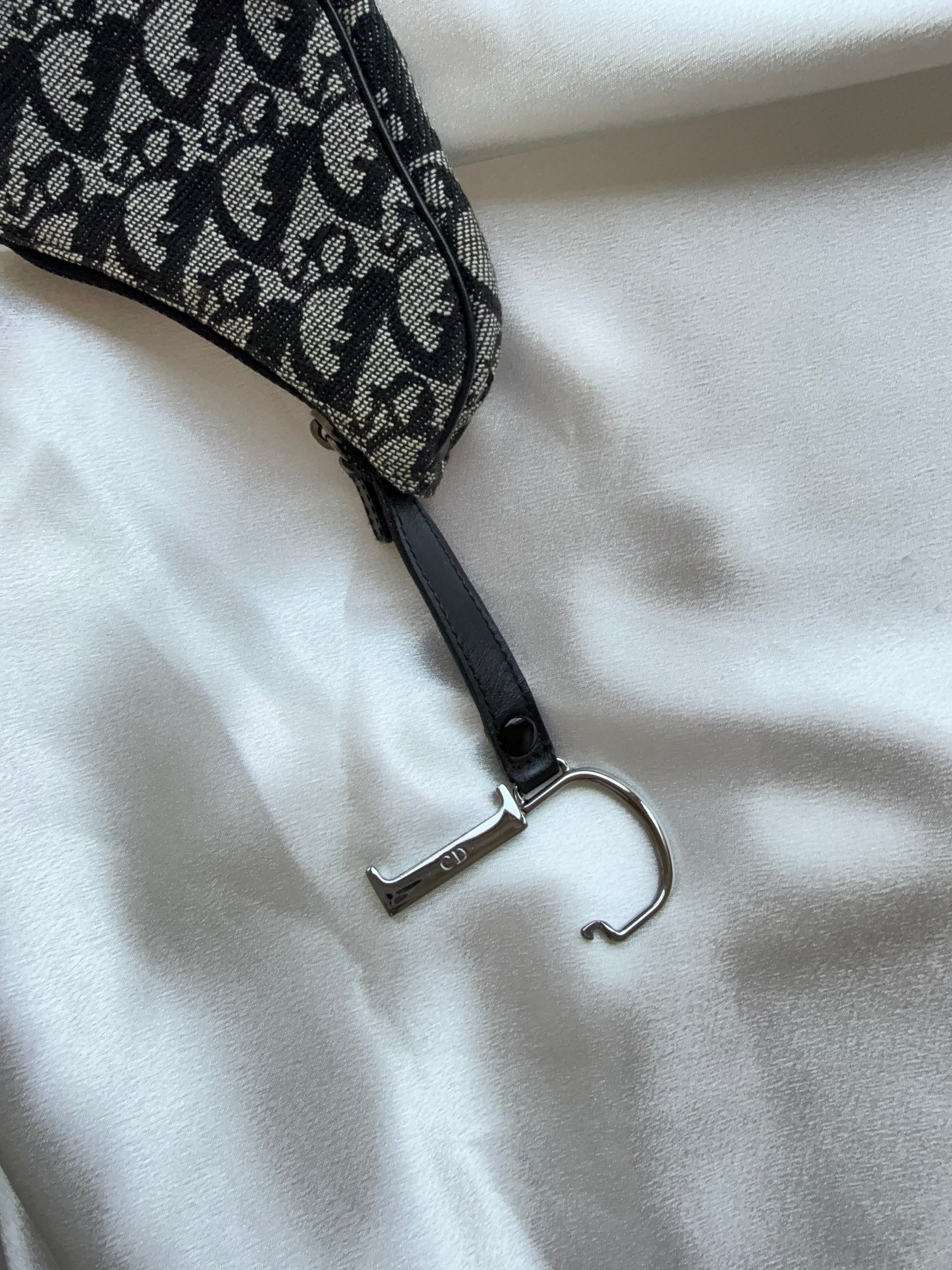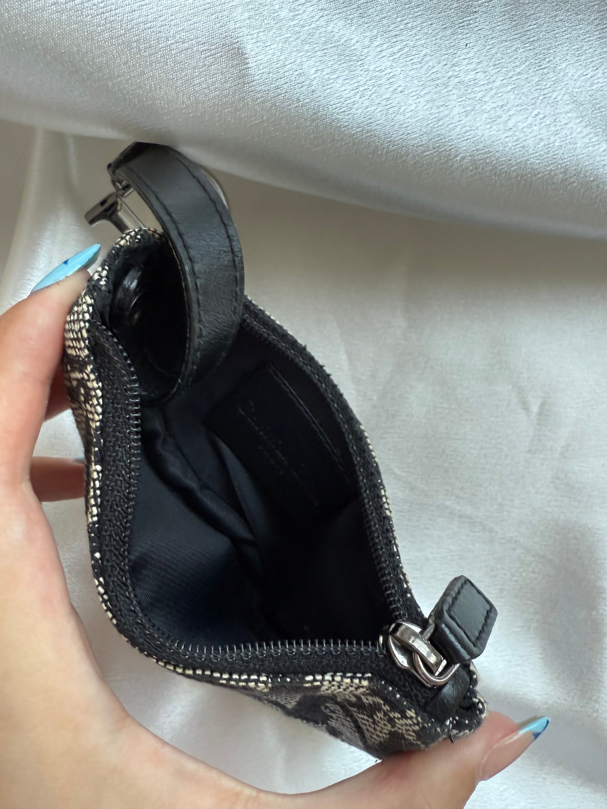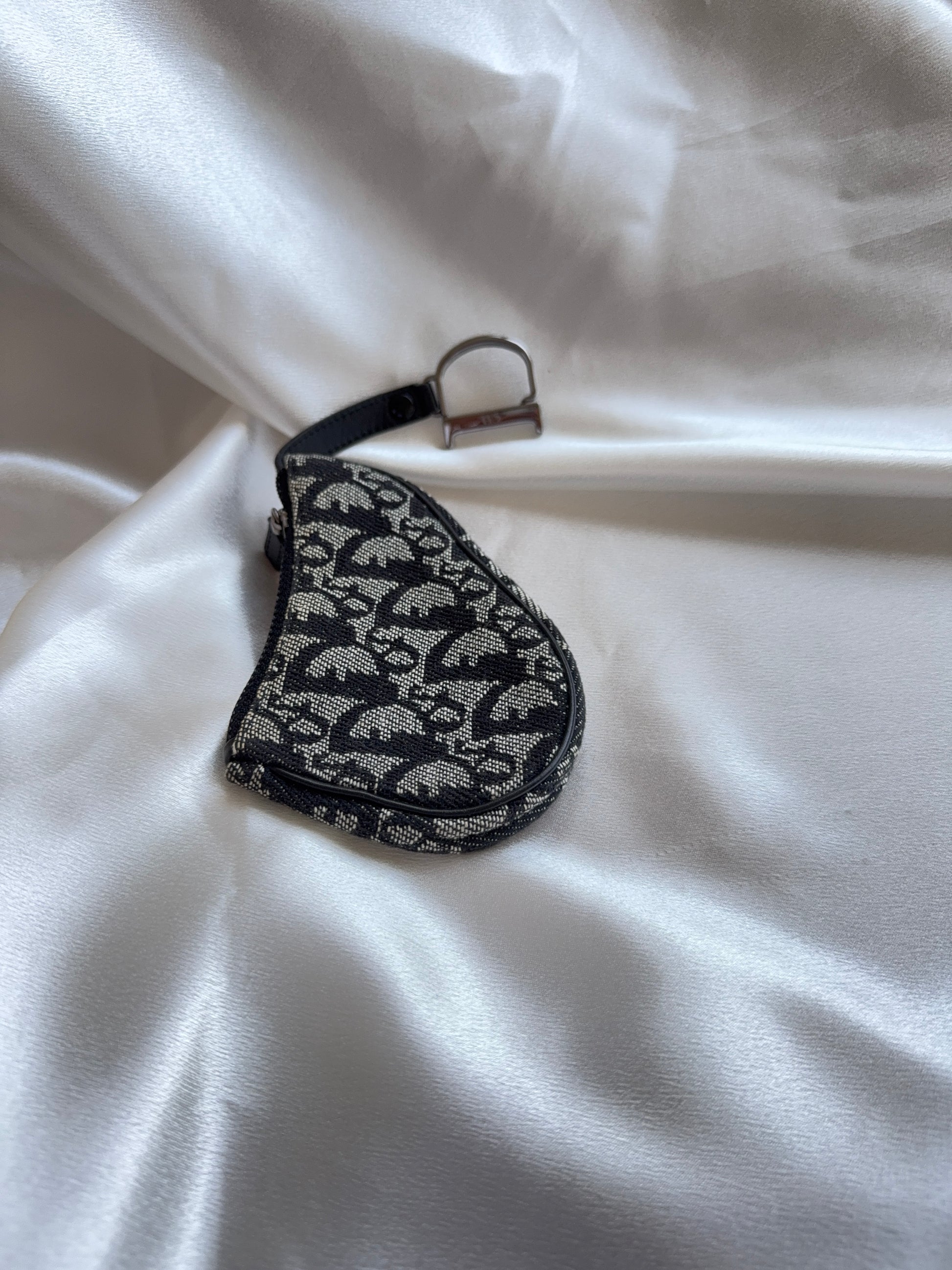 This rare Dior Saddle Oblique Trotter pouch is the perfect miniature accessory. Featuring the iconic Dior Oblique canvas with a silver-tone “D” charm strap, it can be used as a bag charm, key pouch, or for carrying small essentials.