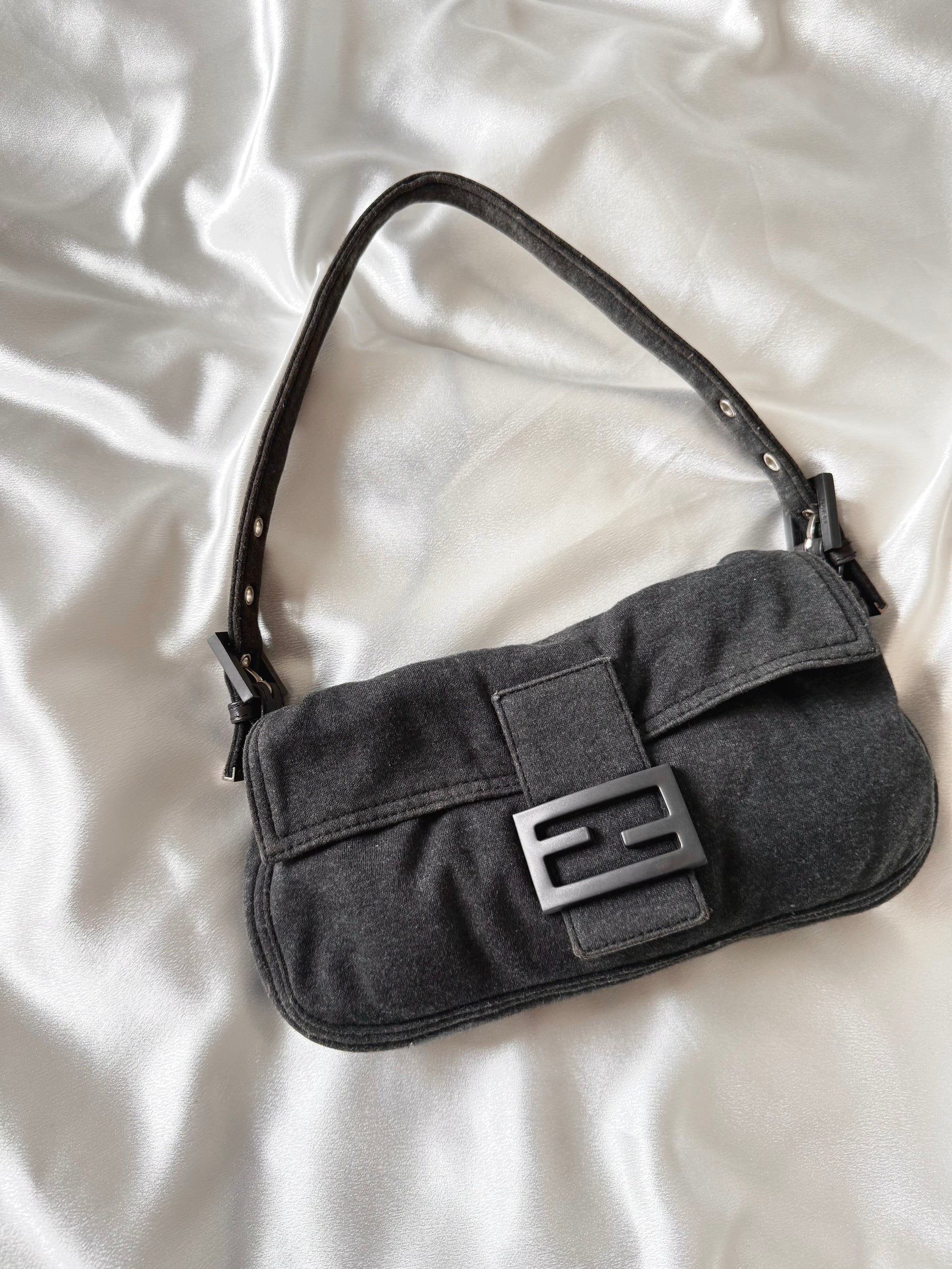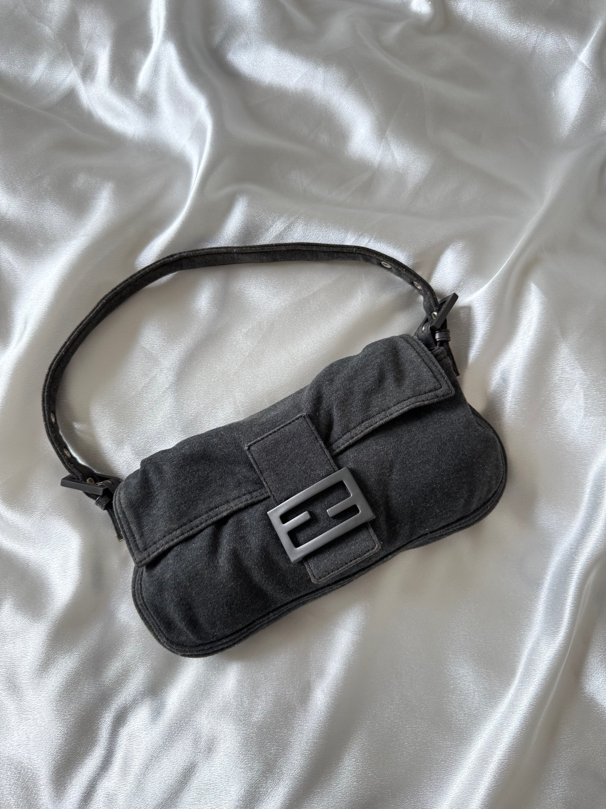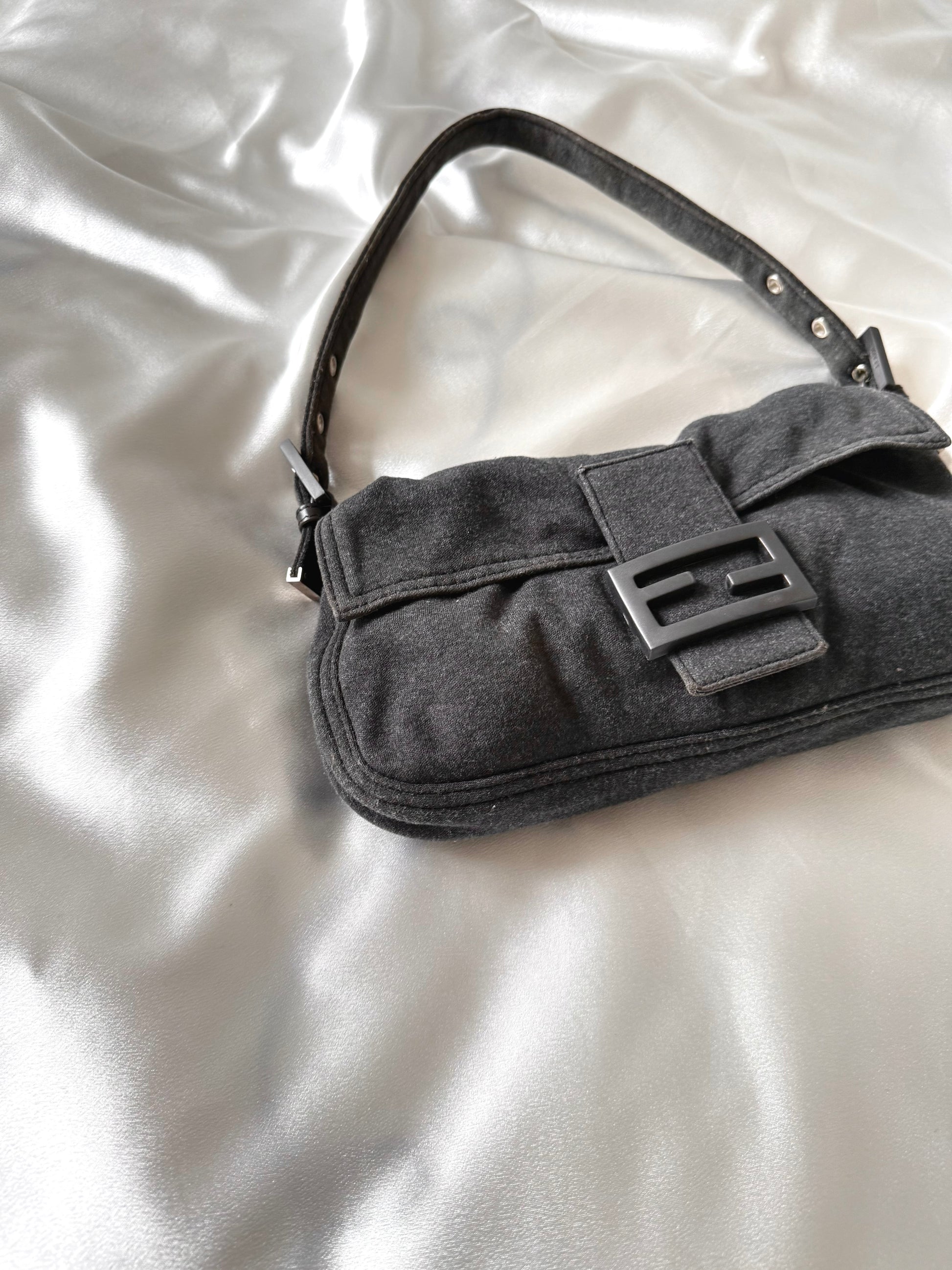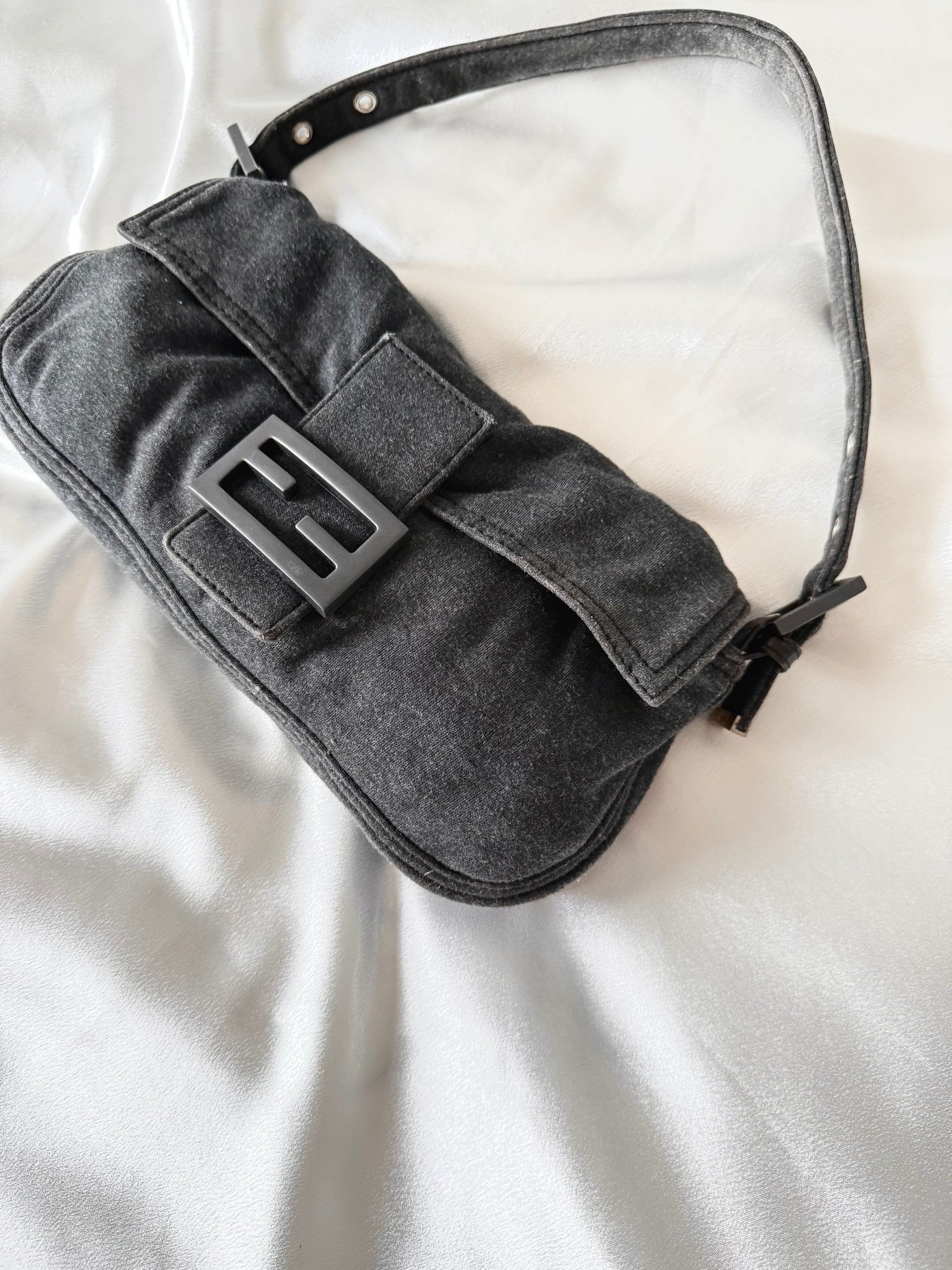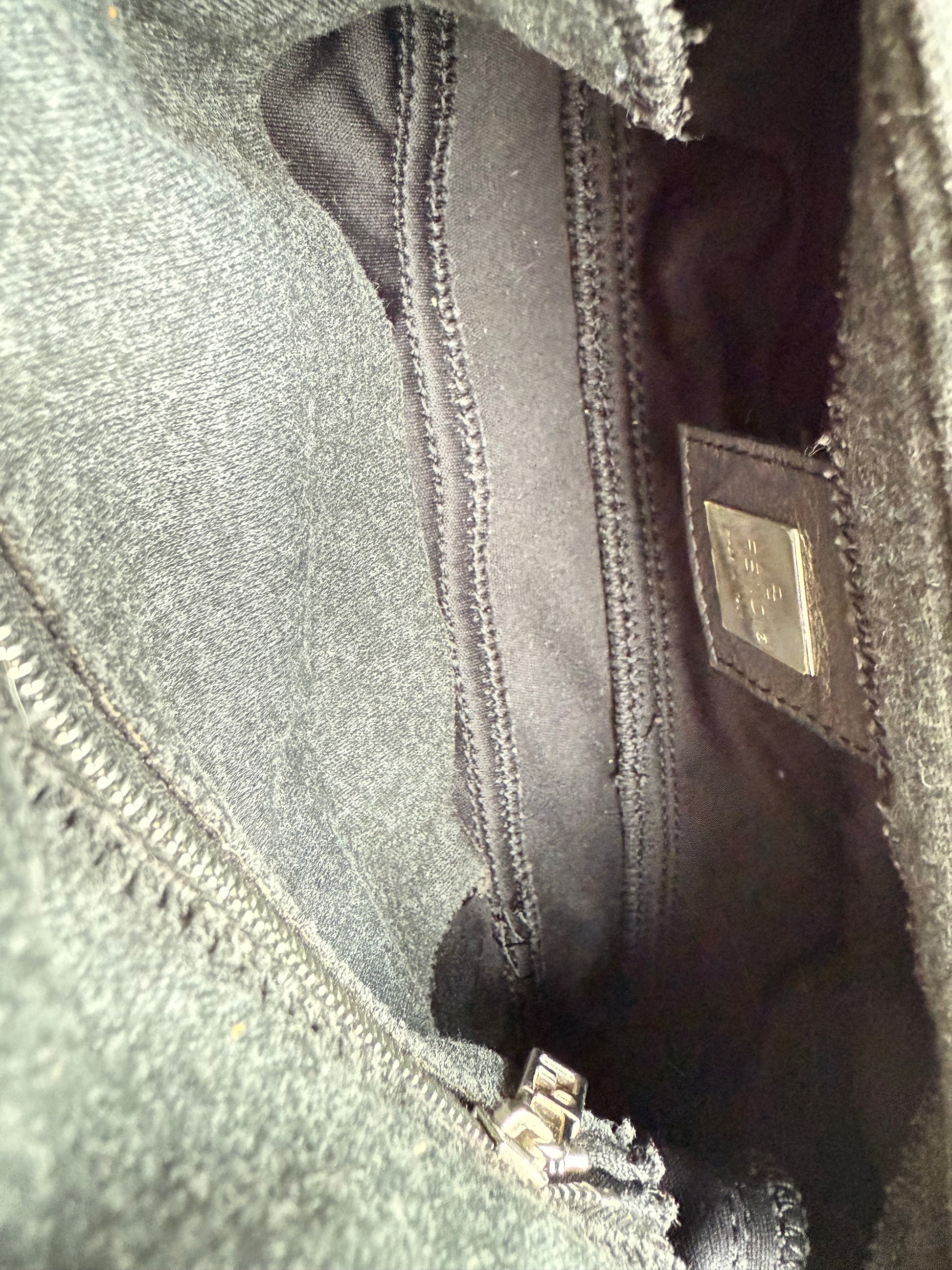 A true icon of early 2000s fashion, this vintage Fendi Baguette bag brings timeless style with a modern edge. Crafted in navy blue fabric, it features Fendi’s signature matte black FF buckle on the front flap. With an adjustable handle and sleek silhouette, it’s perfect for both day and night styling.