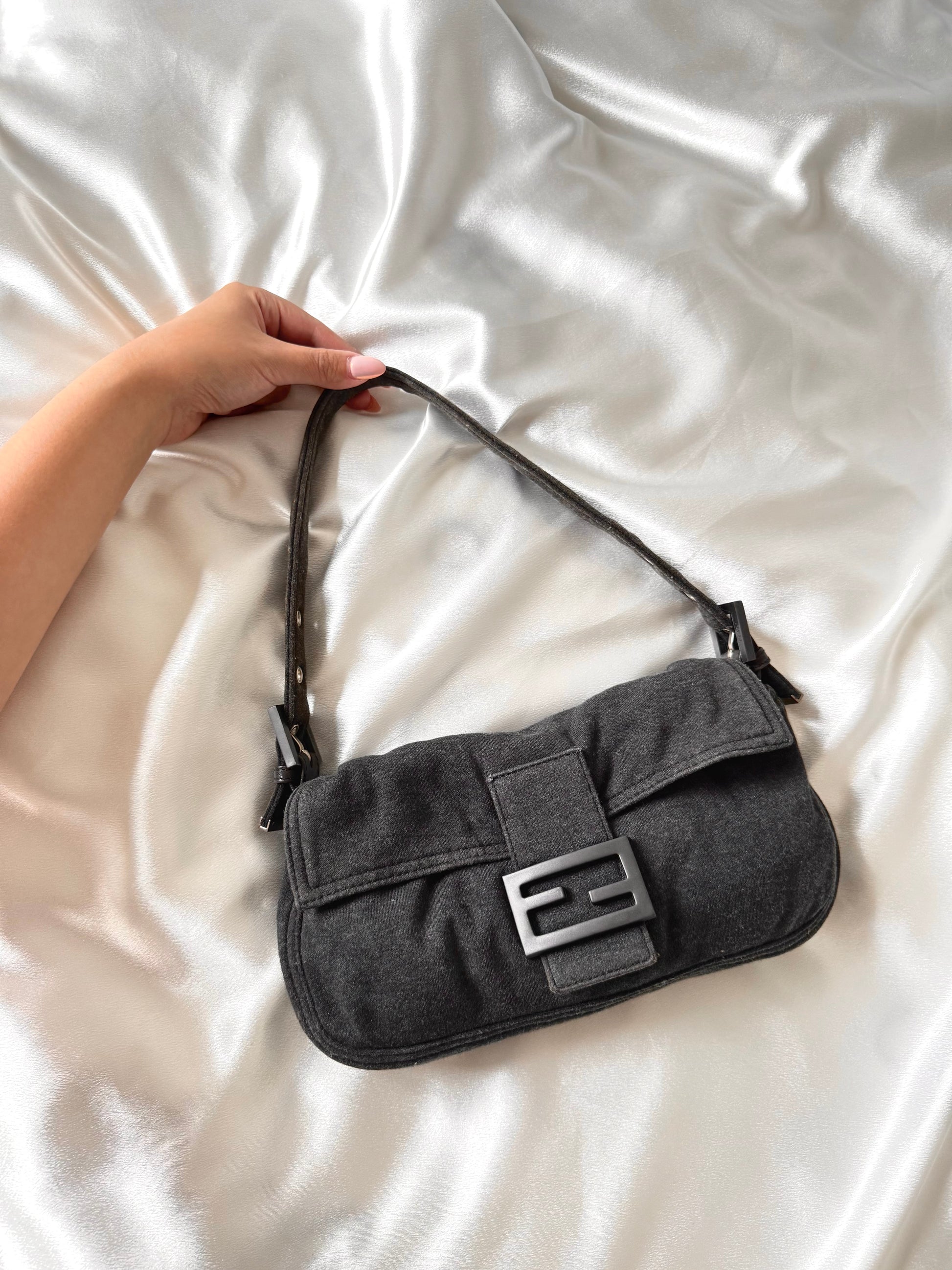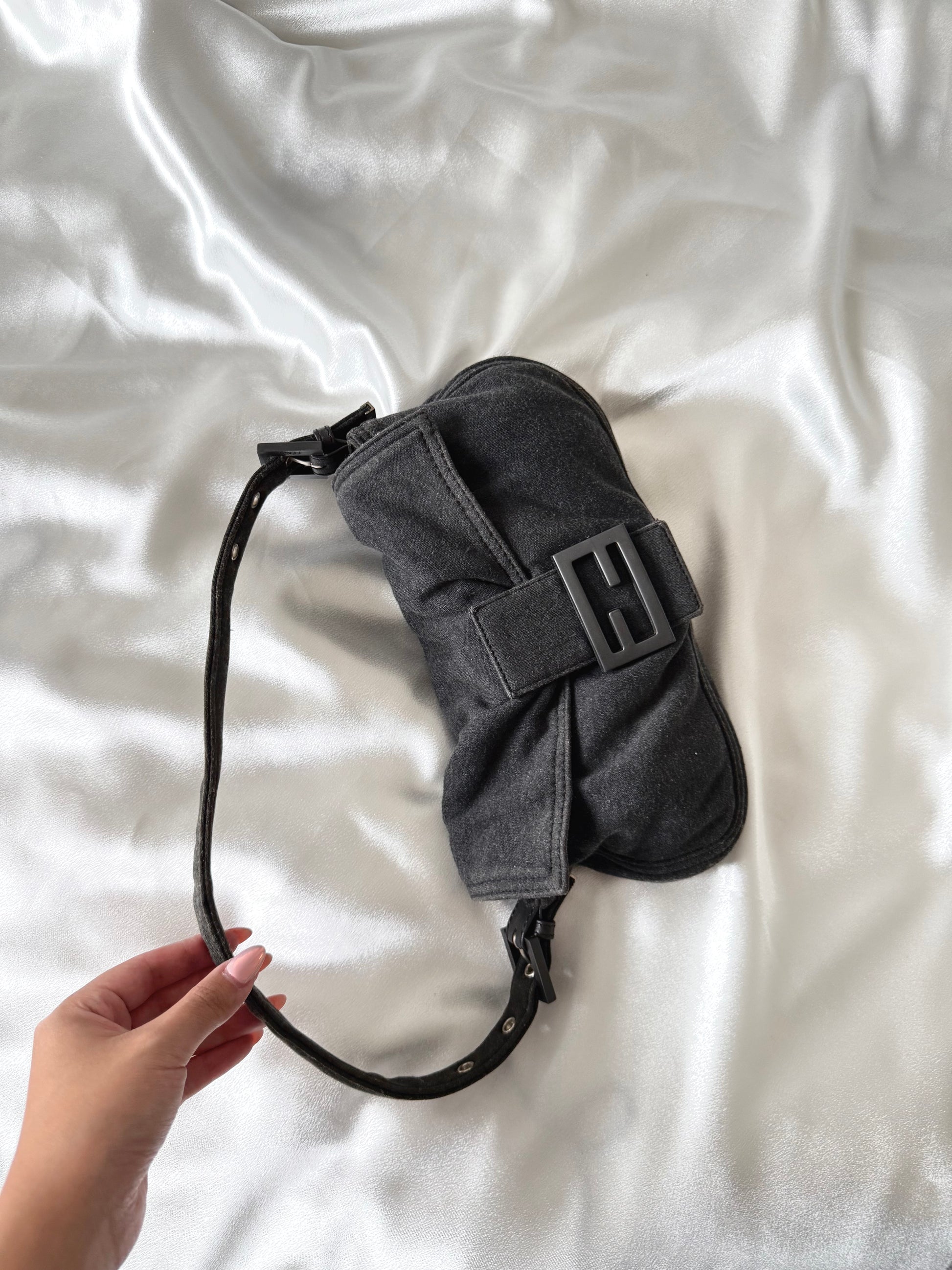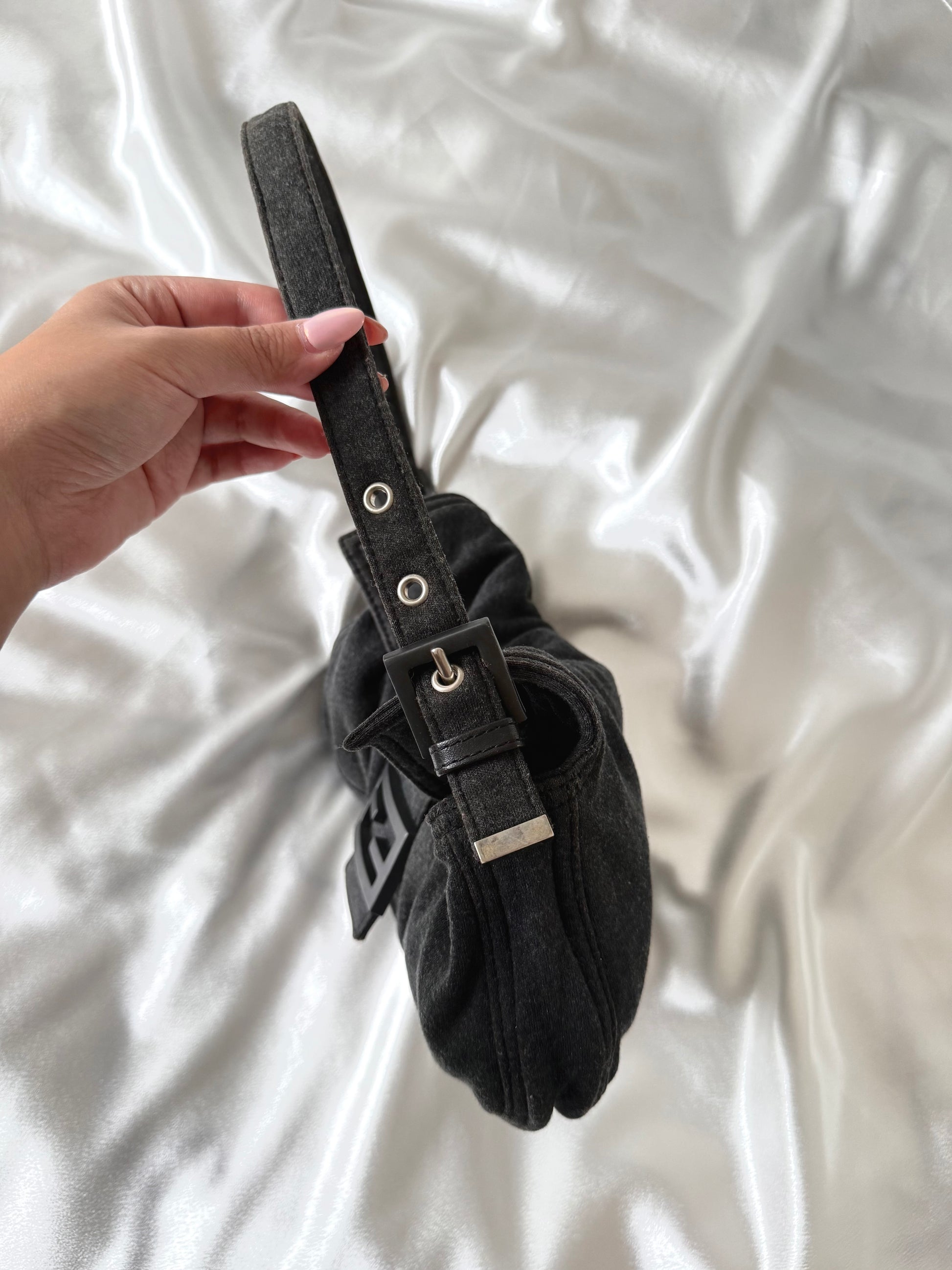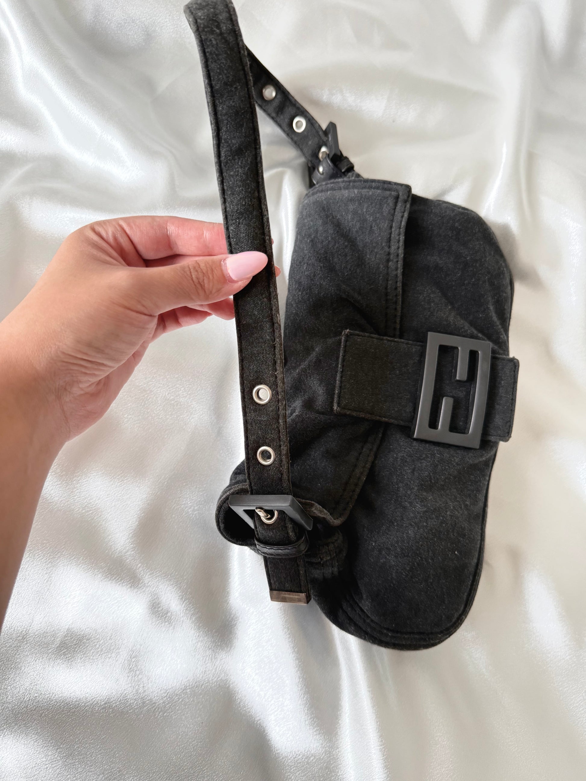 A true icon of early 2000s fashion, this vintage Fendi Baguette bag brings timeless style with a modern edge. Crafted in navy blue fabric, it features Fendi’s signature matte black FF buckle on the front flap. With an adjustable handle and sleek silhouette, it’s perfect for both day and night styling.