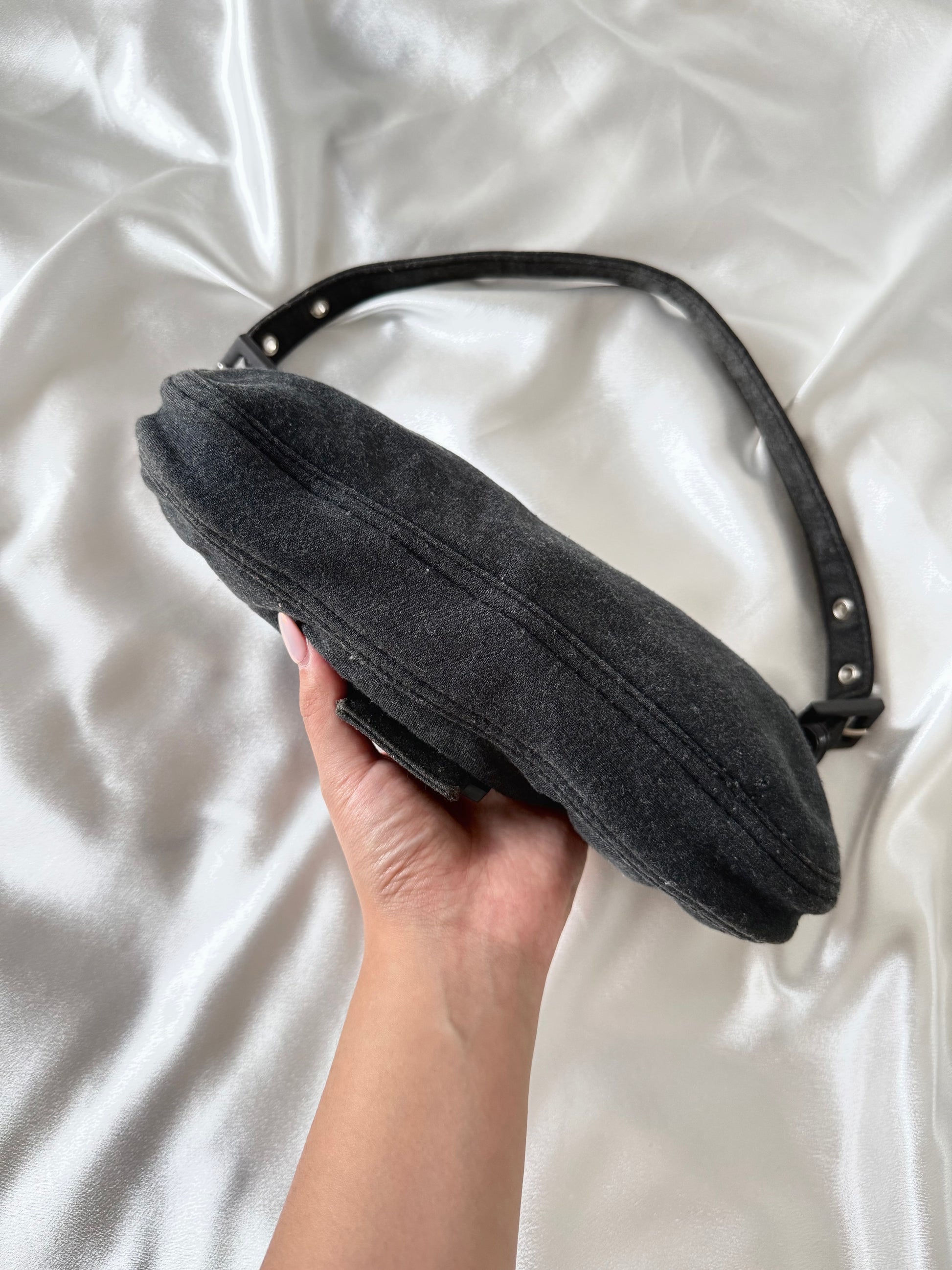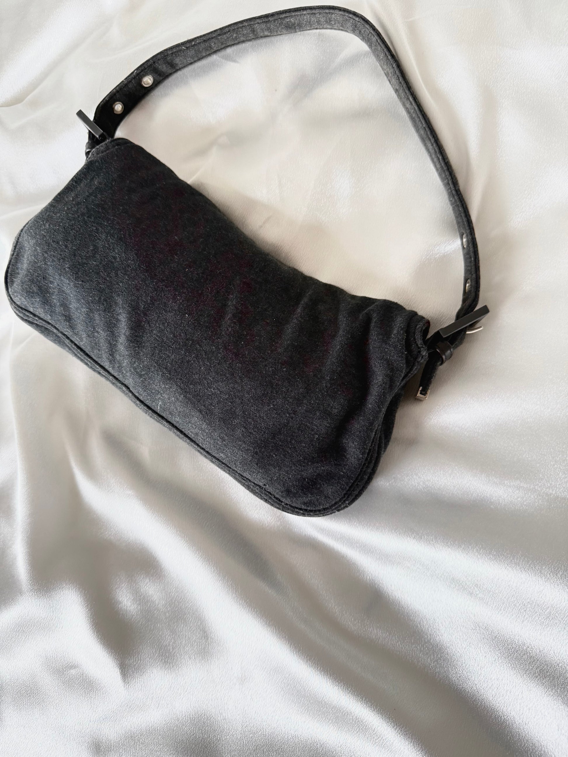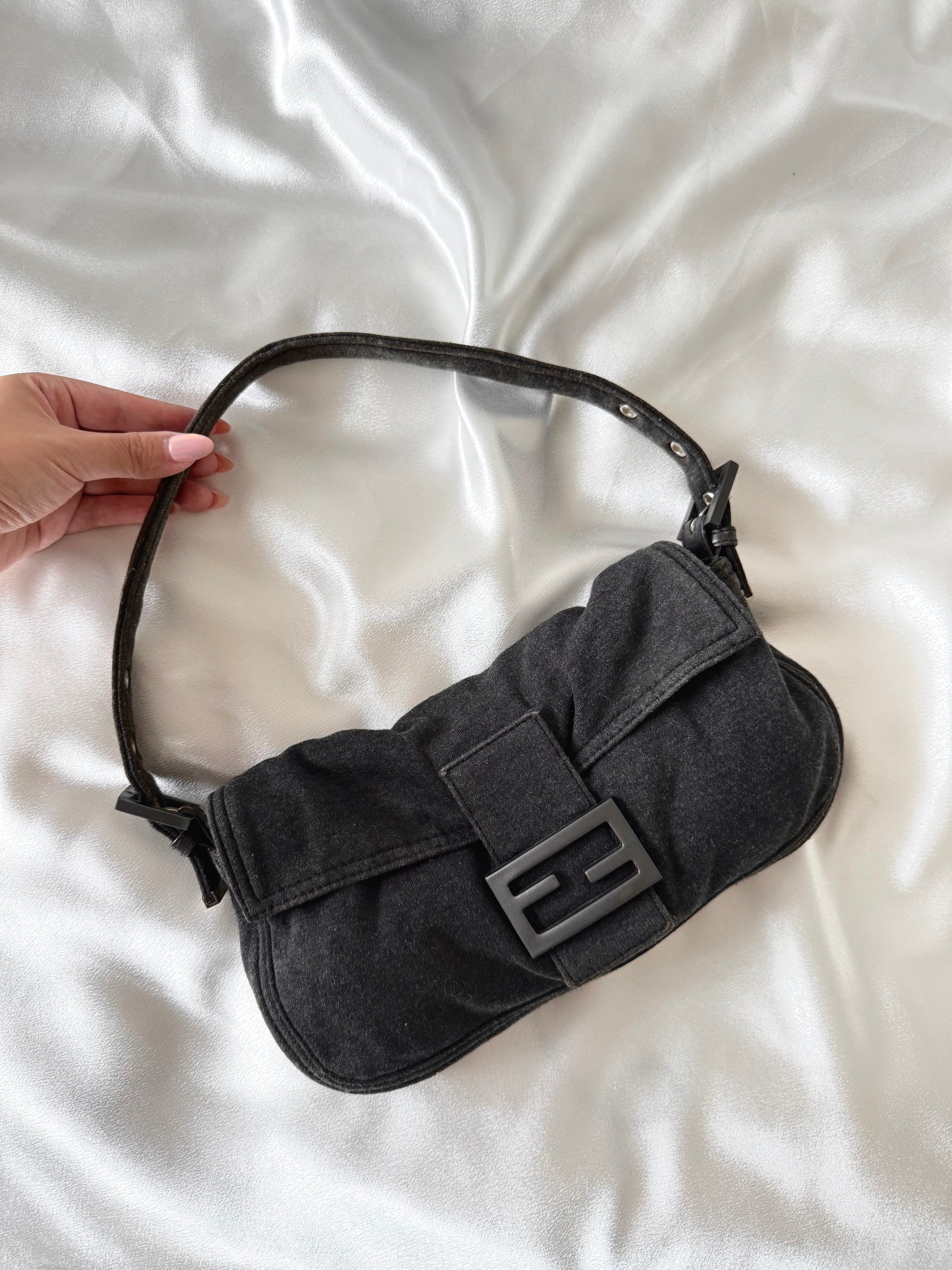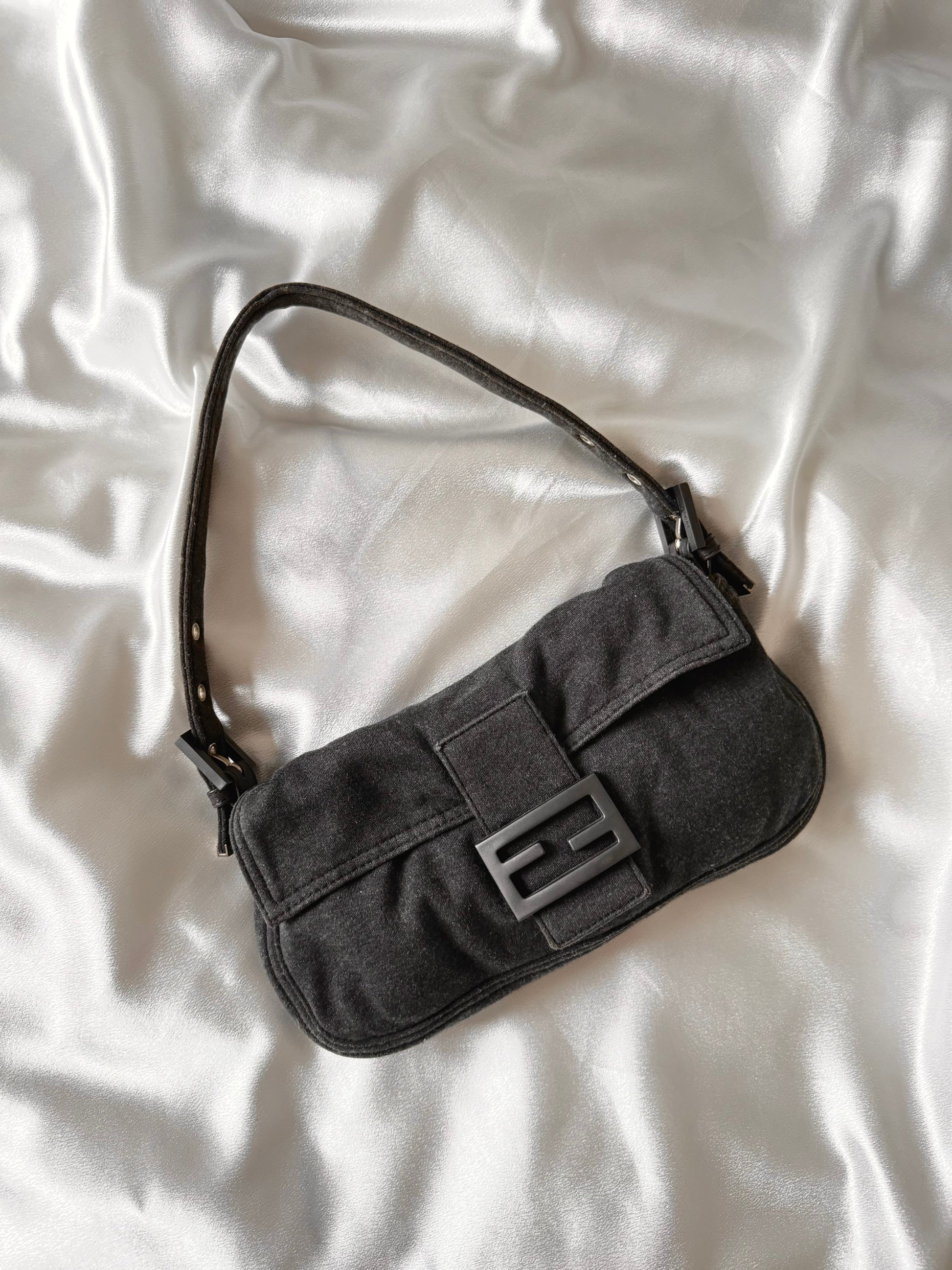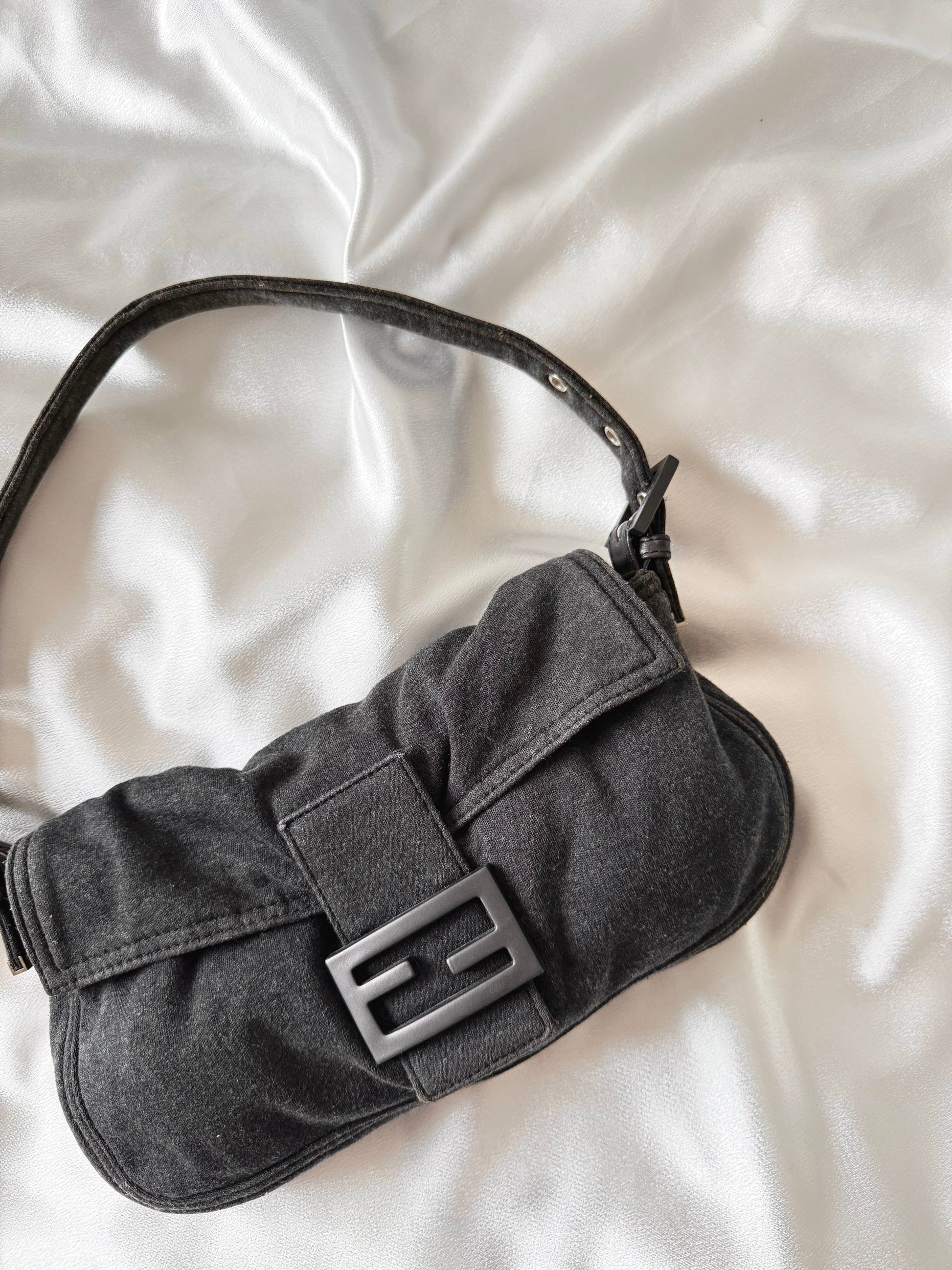 A true icon of early 2000s fashion, this vintage Fendi Baguette bag brings timeless style with a modern edge. Crafted in navy blue fabric, it features Fendi’s signature matte black FF buckle on the front flap. With an adjustable handle and sleek silhouette, it’s perfect for both day and night styling.