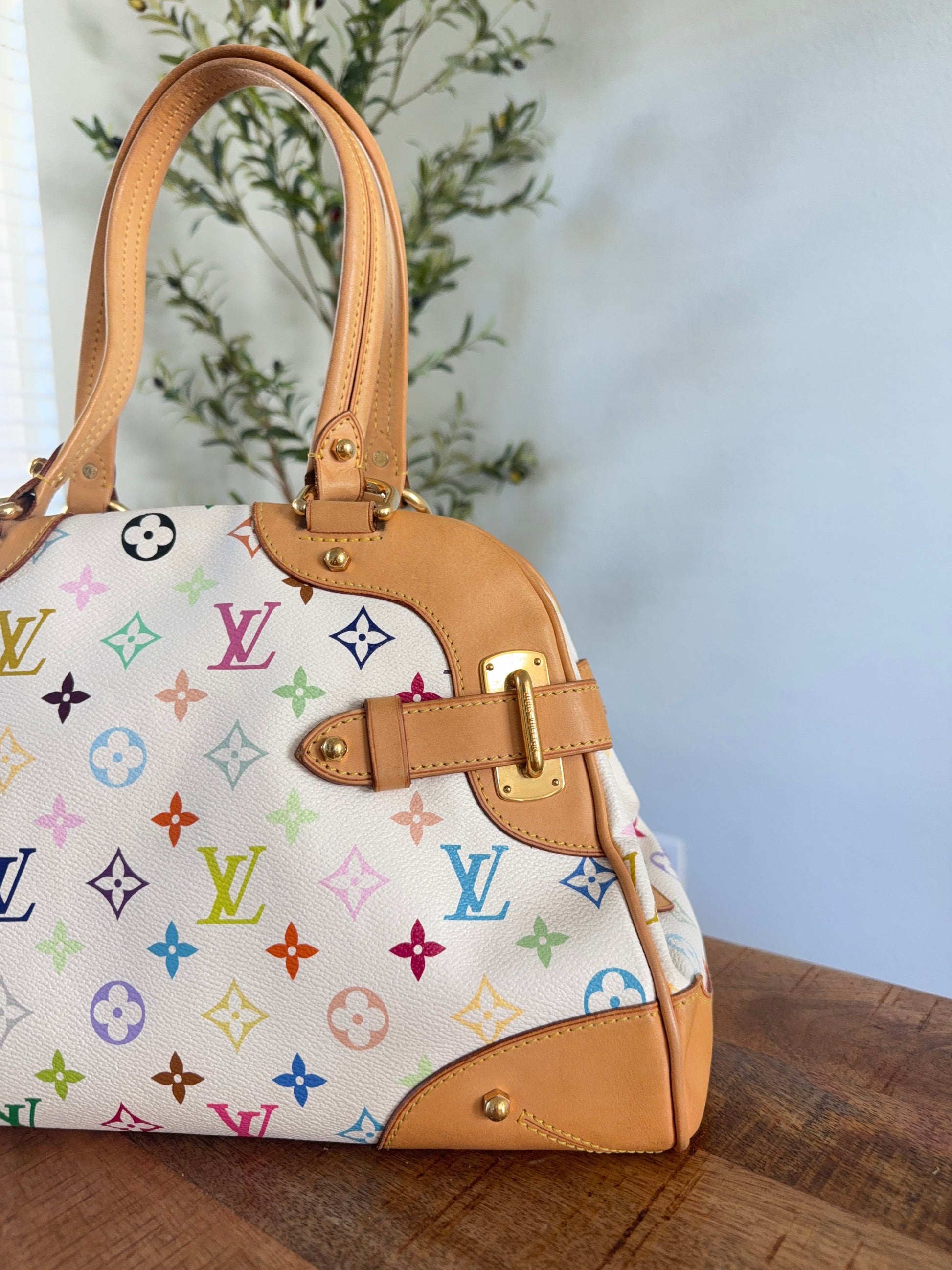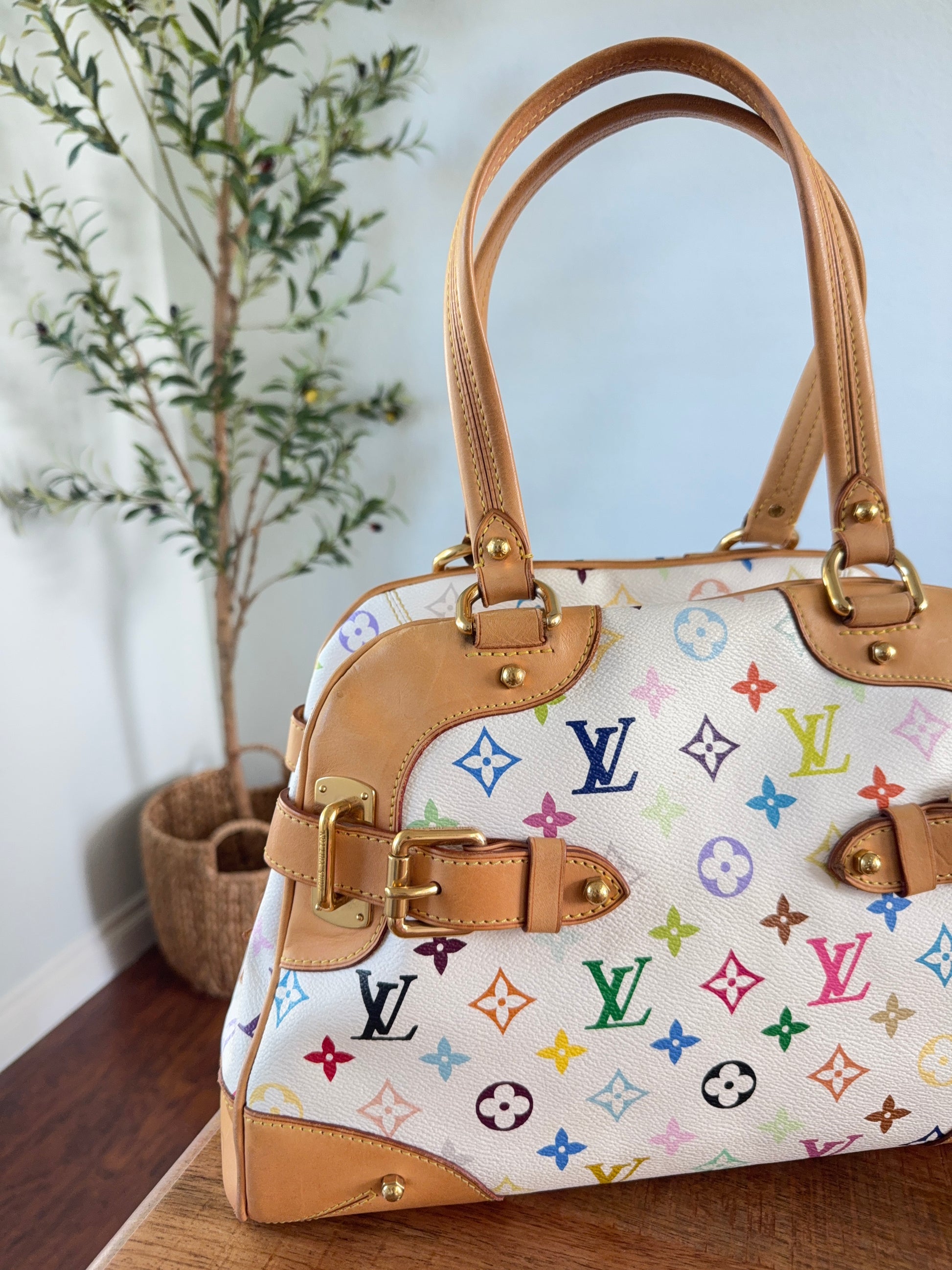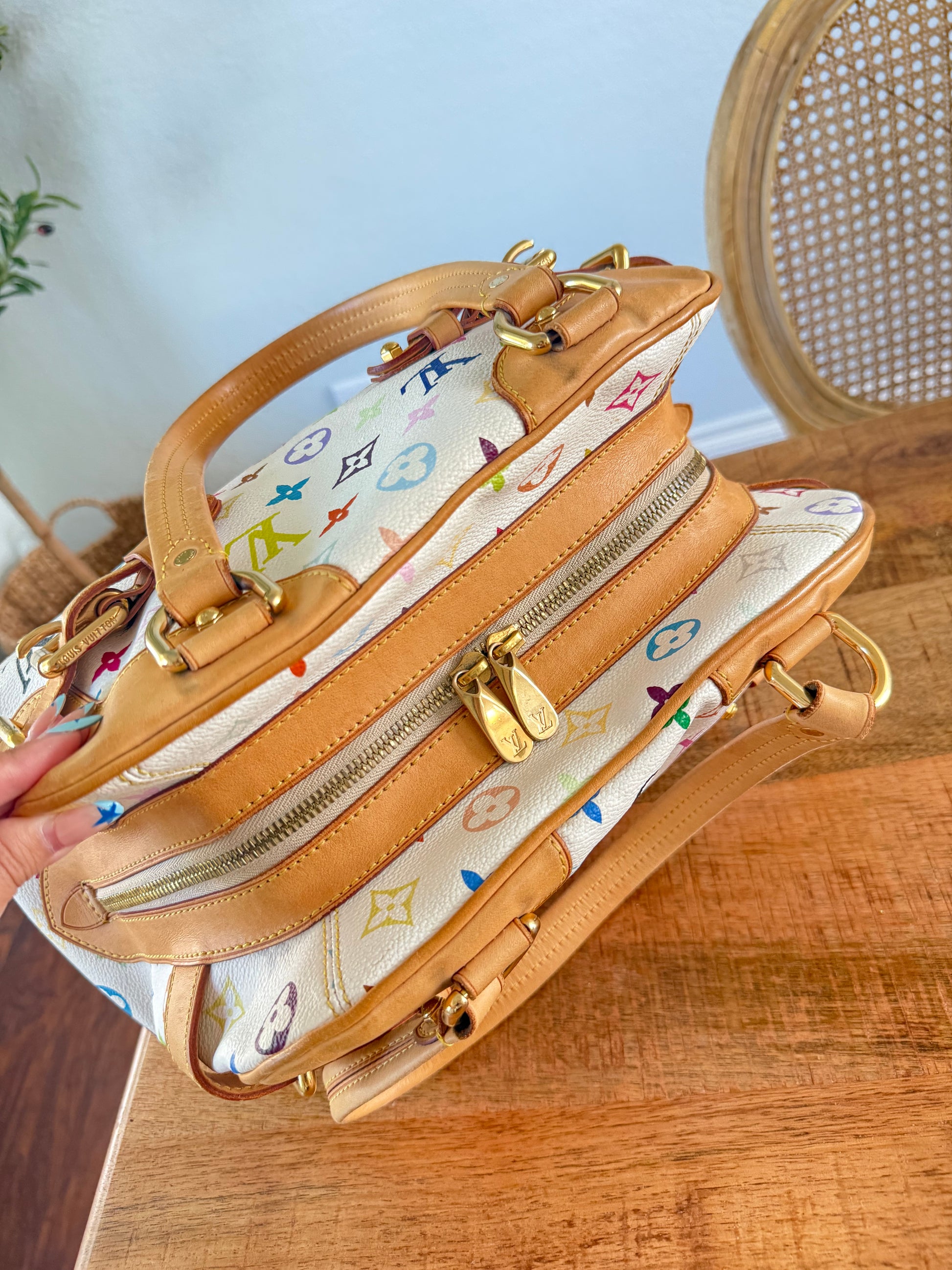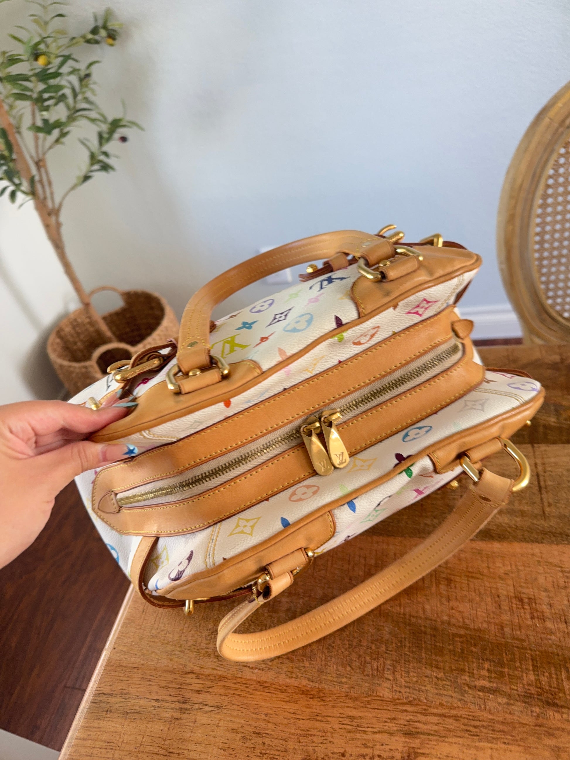 - Material: Louis Vuitton Multicolor Monogram Canvas with natural cowhide leather trim