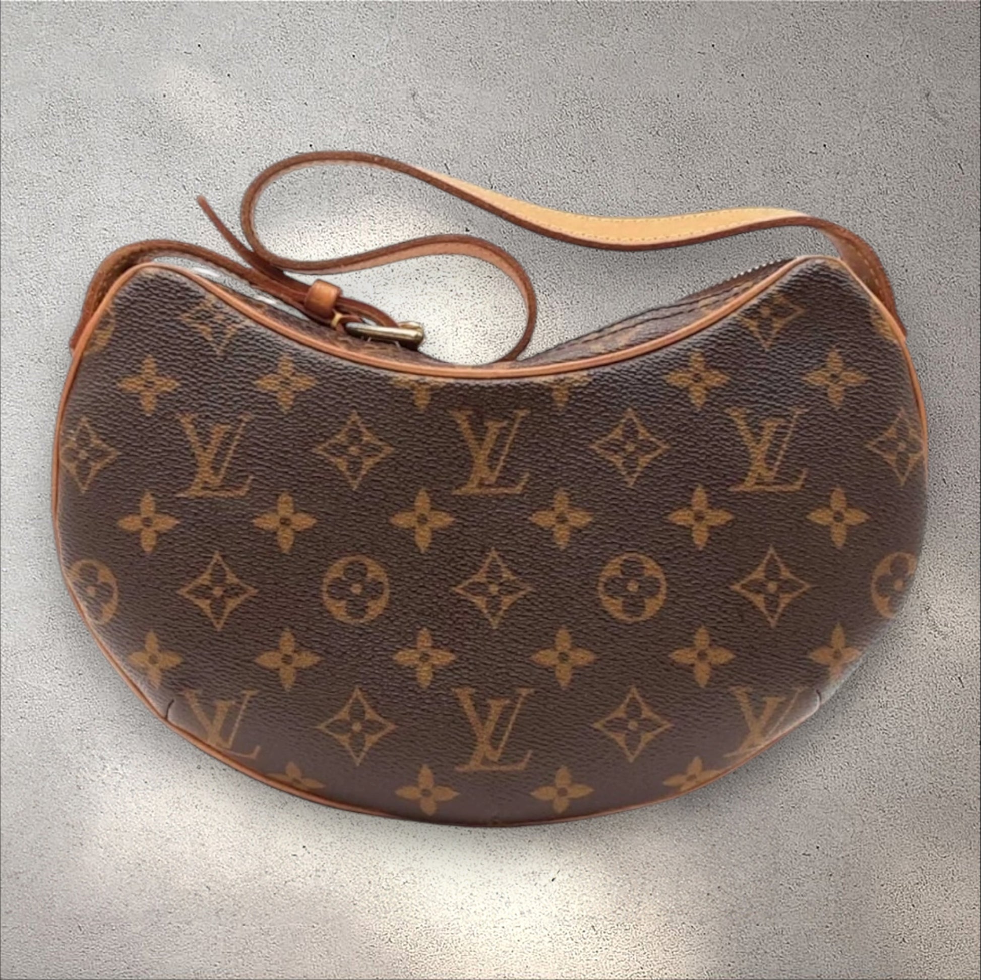 The Croissant PM is a rare, Y2K-era Louis Vuitton icon crafted in signature Monogram coated canvas with vachetta leather details and gold-tone hardware. Its playful crescent shape makes it the perfect statement shoulder bag for everyday wear.