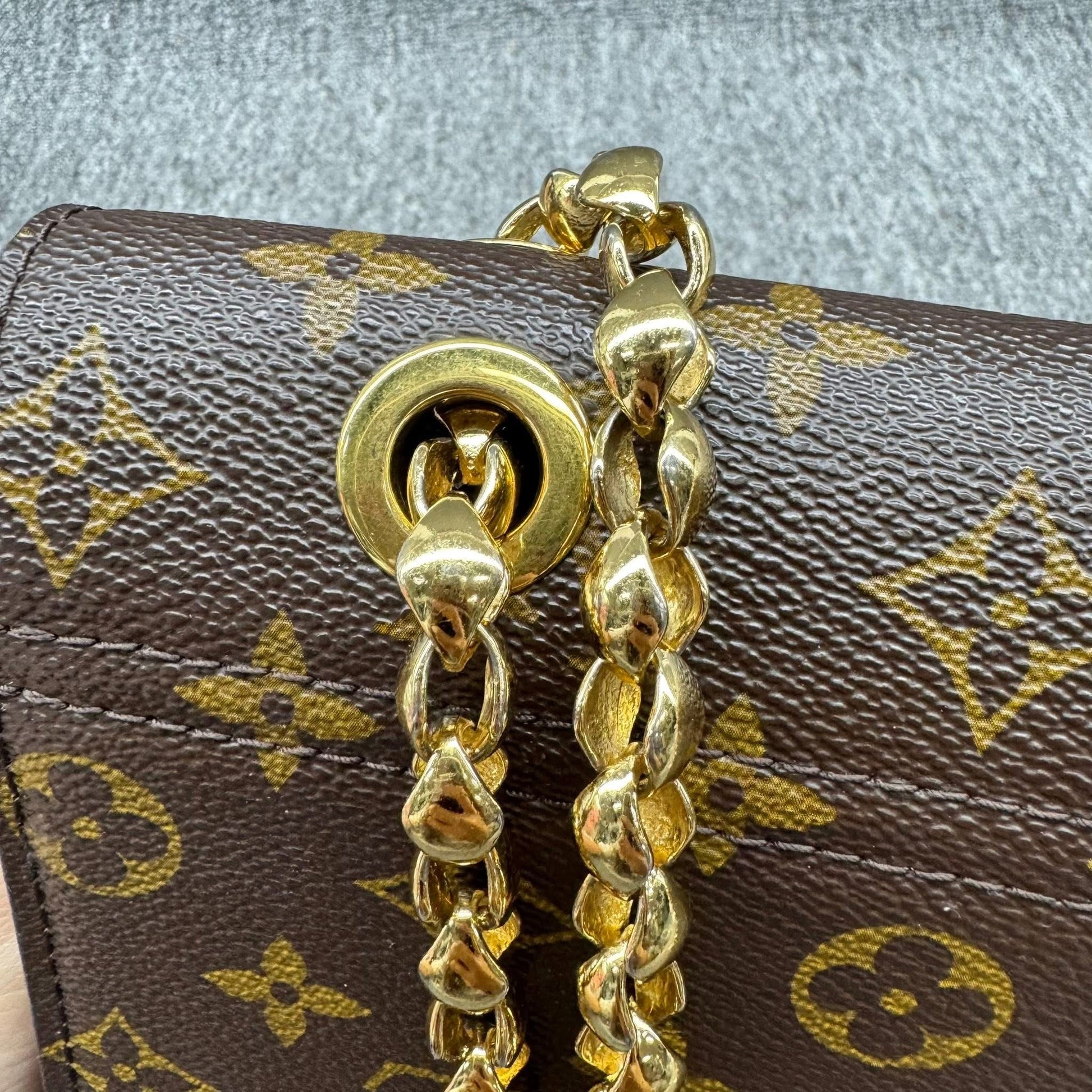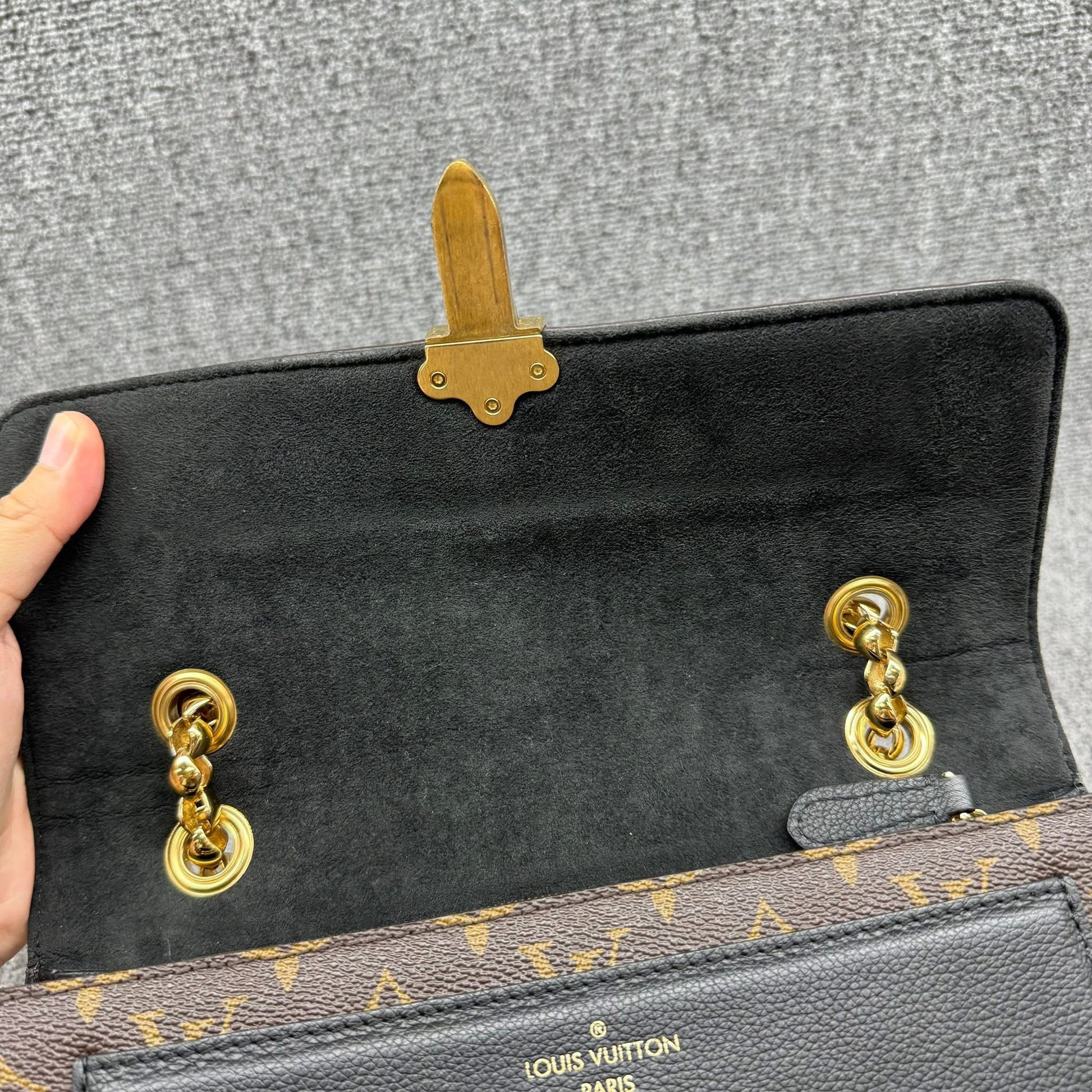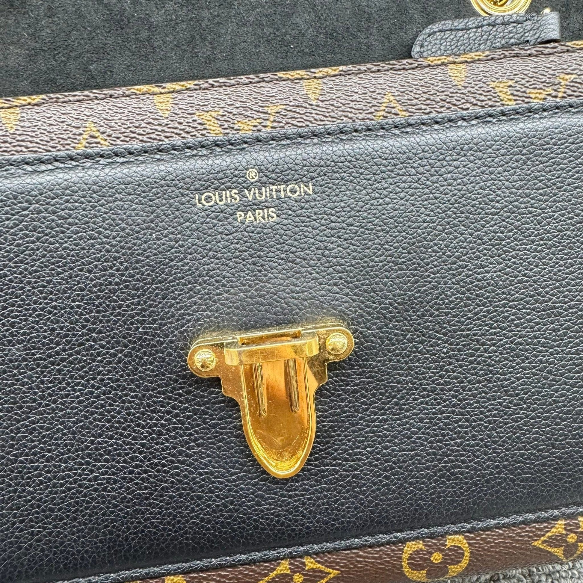 Elevate your collection with the Louis Vuitton Victoire, a timeless blend of sophistication and practicality. Crafted from the iconic Monogram canvas with luxurious black leather accents, this bag features a striking gold-tone push-lock clasp and a chic chain strap that can be worn on the shoulder or crossbody.