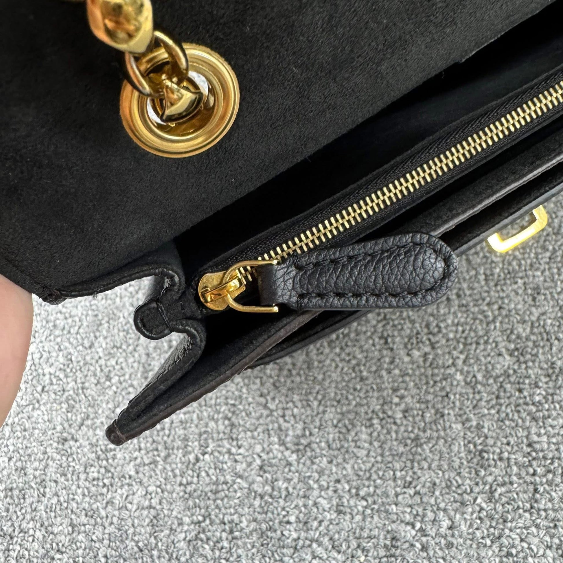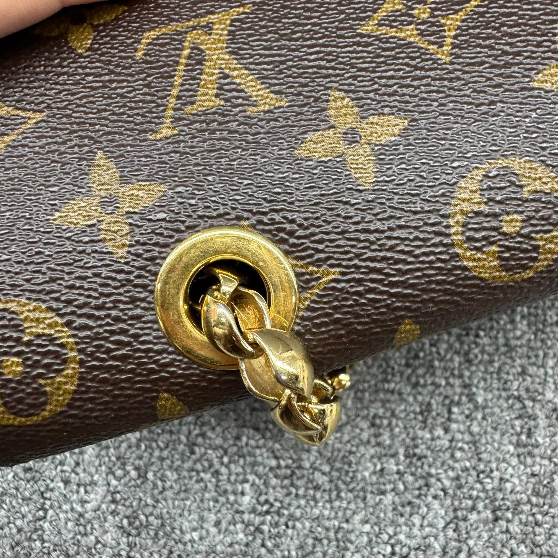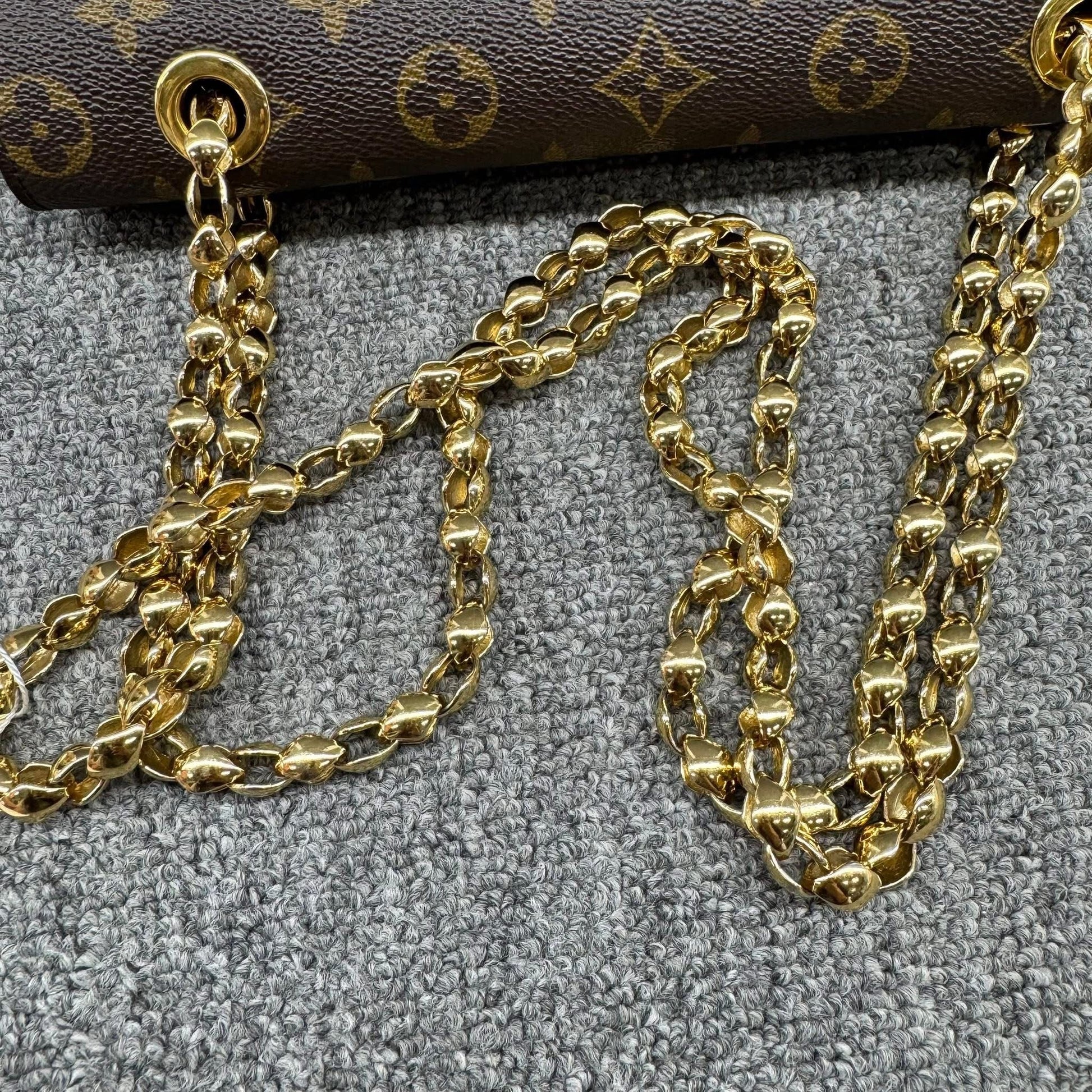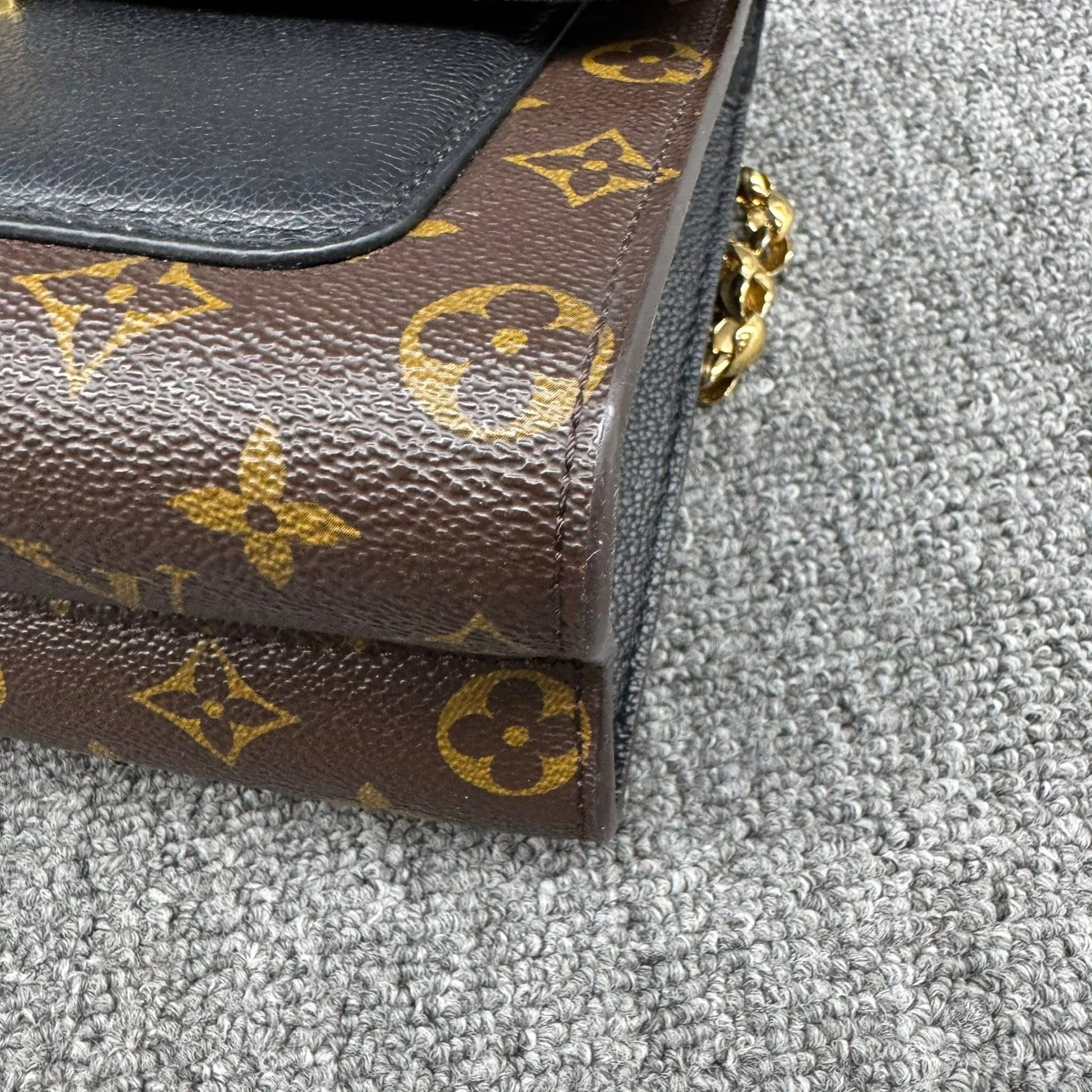 Elevate your collection with the Louis Vuitton Victoire, a timeless blend of sophistication and practicality. Crafted from the iconic Monogram canvas with luxurious black leather accents, this bag features a striking gold-tone push-lock clasp and a chic chain strap that can be worn on the shoulder or crossbody.