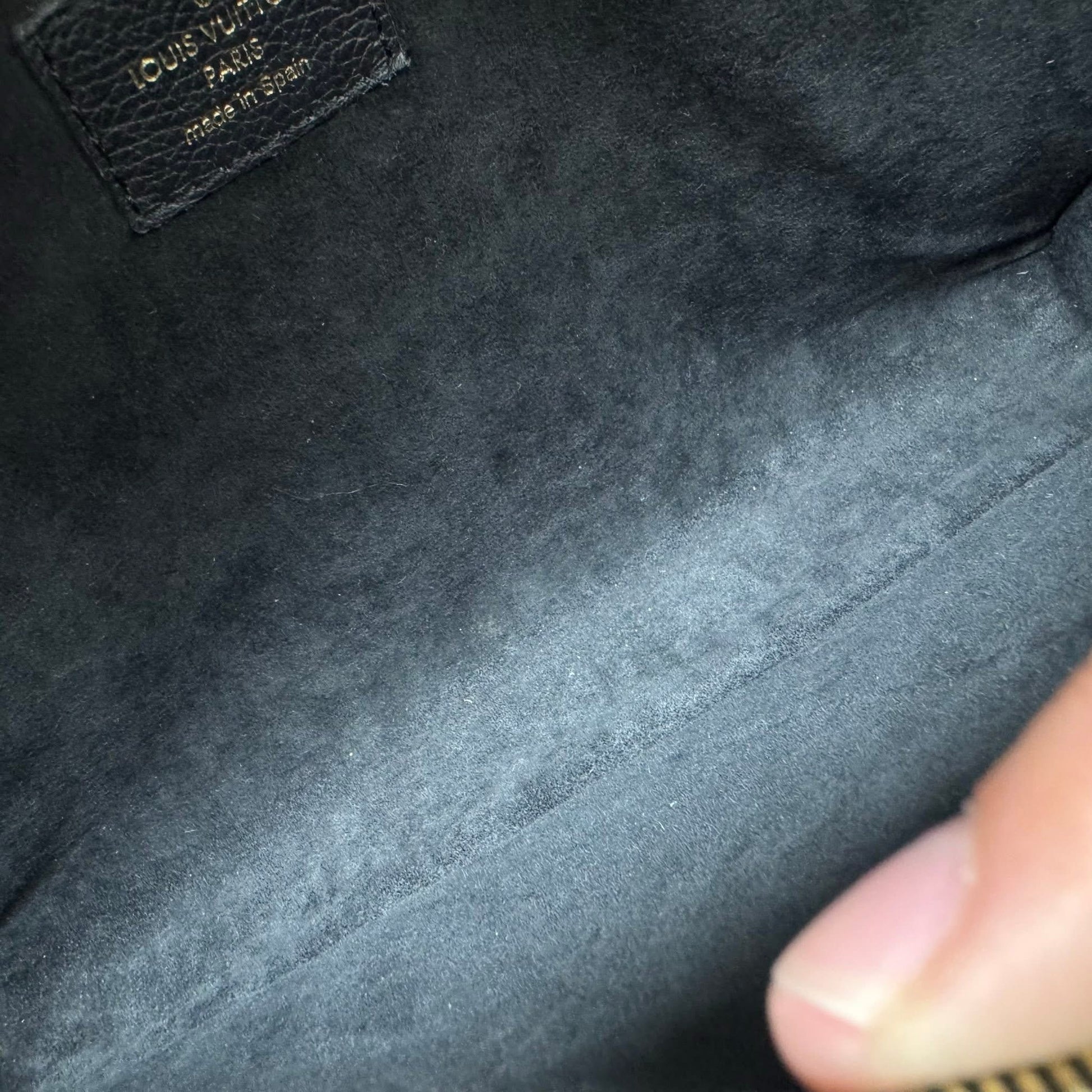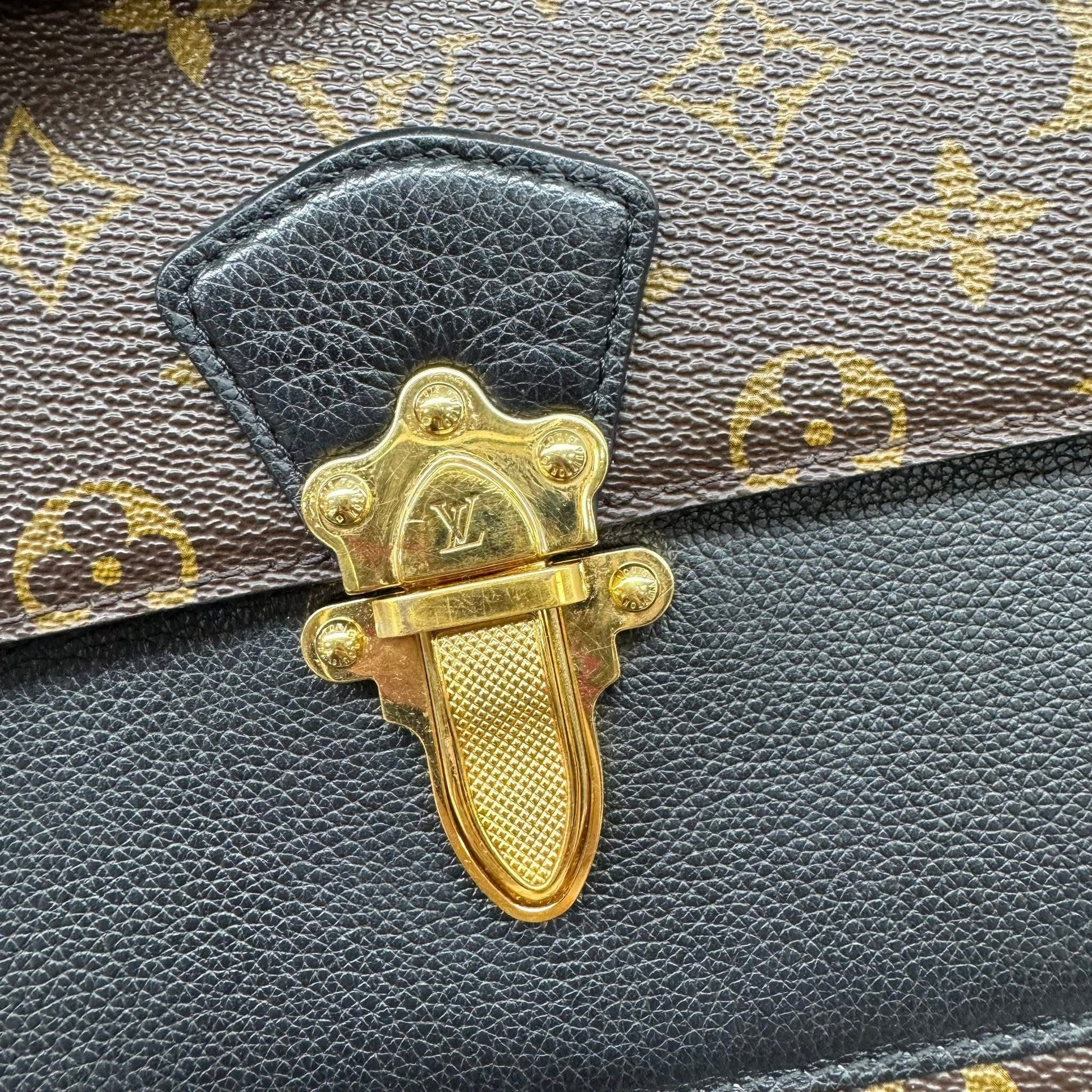 - Authentic Louis Vuitton Monogram canvas with black leather trim