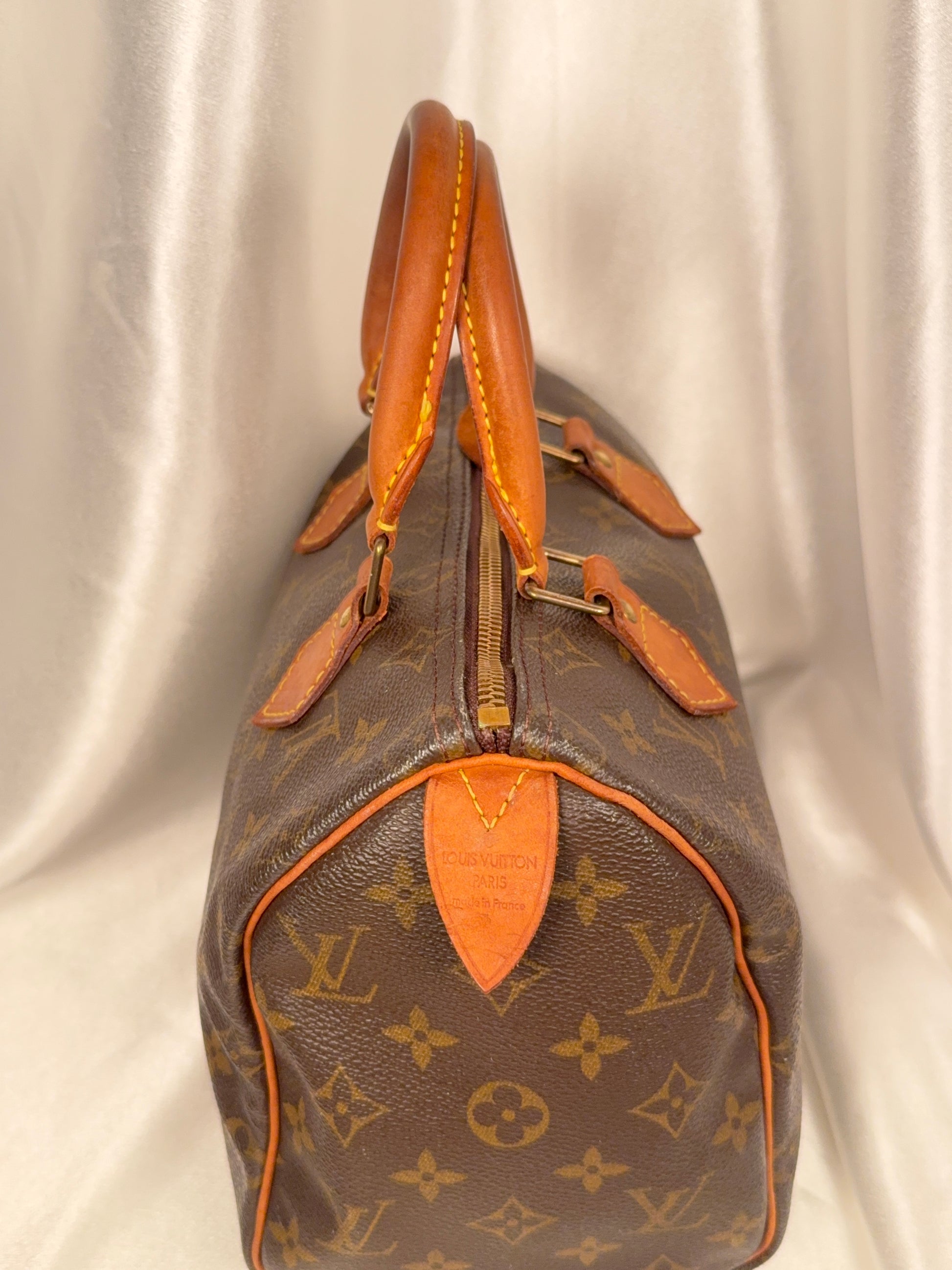 This Speedy 25 features a soft yet structured shape, a spacious interior, and the perfect handheld drop for daily wear.