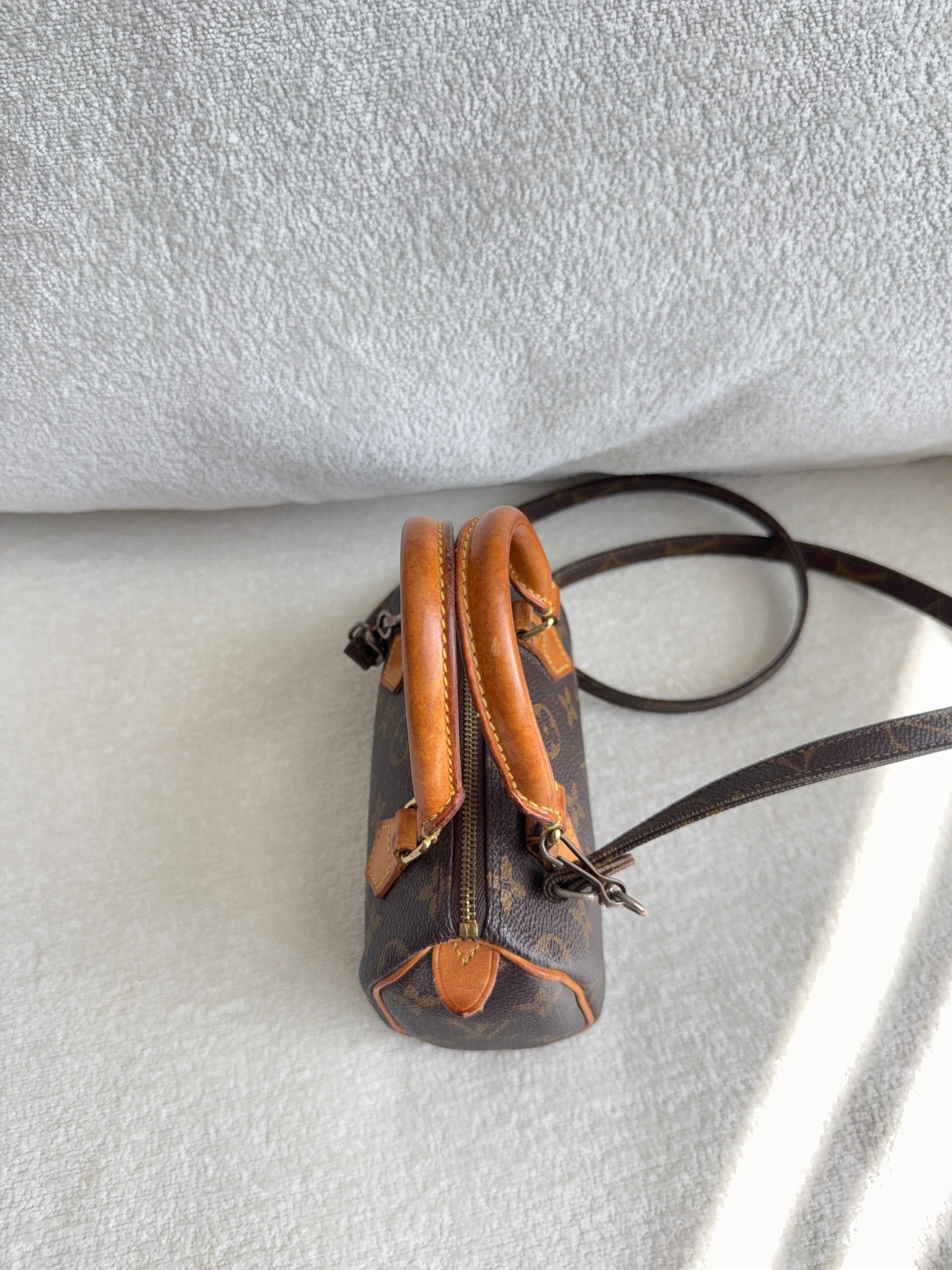 This authentic Louis Vuitton Speedy Mini is a rare vintage find from May 1994, crafted in France with the iconic Monogram Canvas.