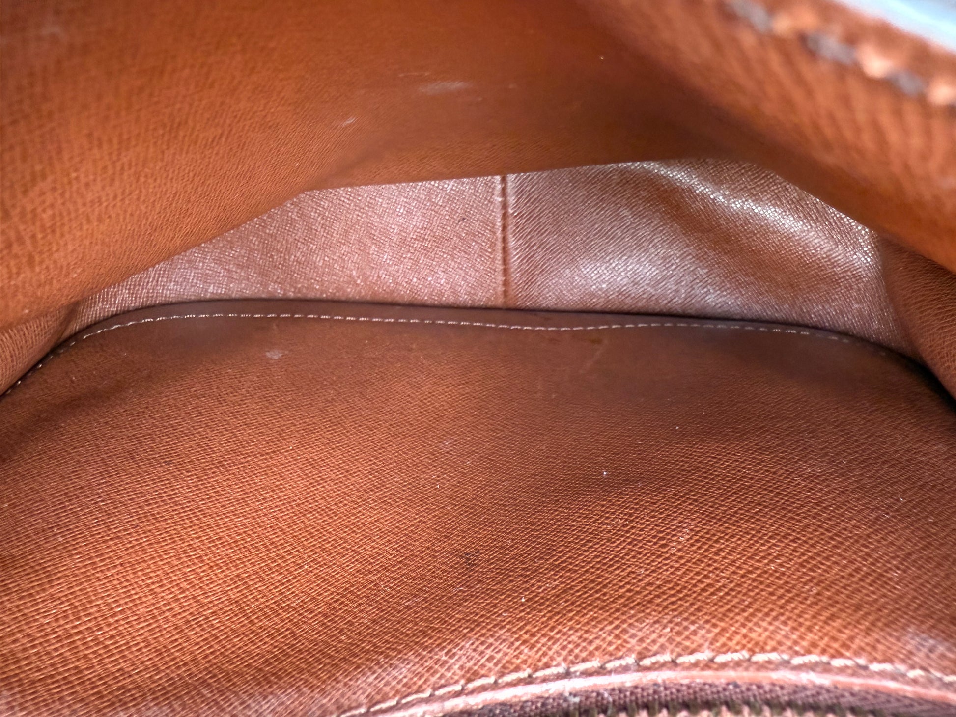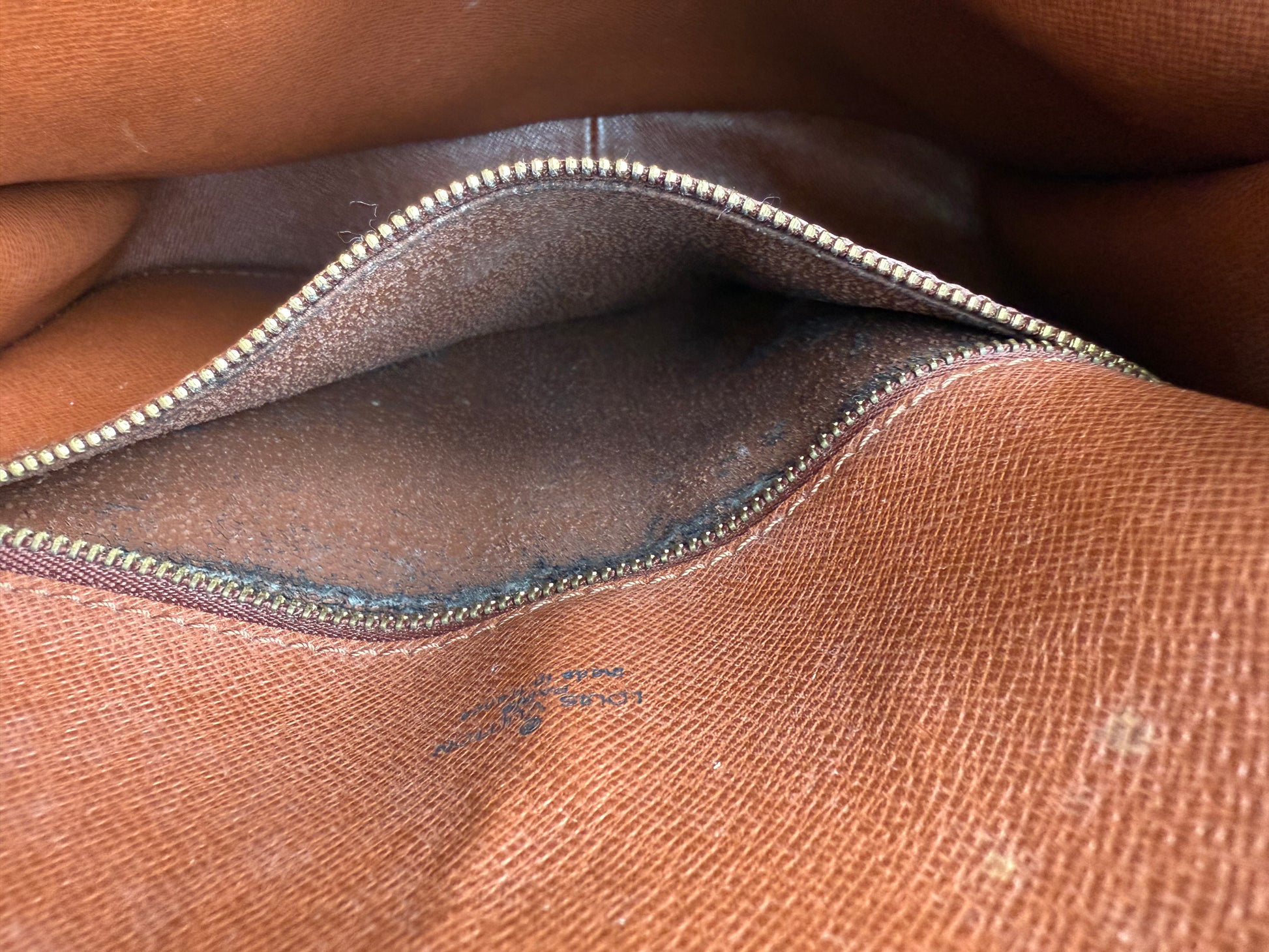 - Inner pocket has dry peeling due to age (common in vintage LV), but the zipper runs smoothly